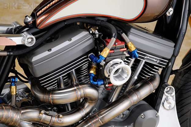 Hoshikawa производит по заказу выпускную систему «2 в 1», которая заканчивается глушителем шума Pro Circuit. Это гарантирует, что вы услышите характерный рокот большого V-образного мотора с мощностью около 100 л.с. Конечно, были построены и более резвые cafe racer, но в них не было этой смеси классической элегантности со стильностью 21 века.