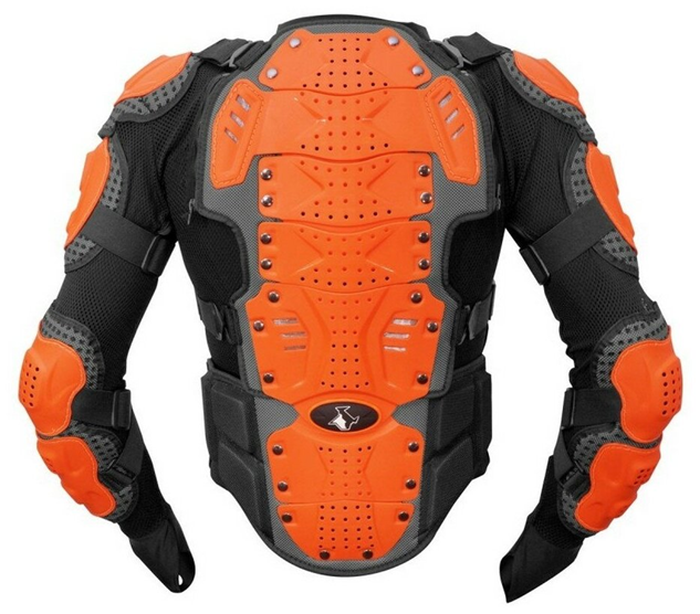 • Уровень 2. Отличается от предыдущего уровня пластинками, которые защищают шею и руки мотоциклиста. Живот, как правило, не защищен. Однако защитные мото панцири второго уровня – самые распространенные, их покупают и для городских условий, и для кросса.