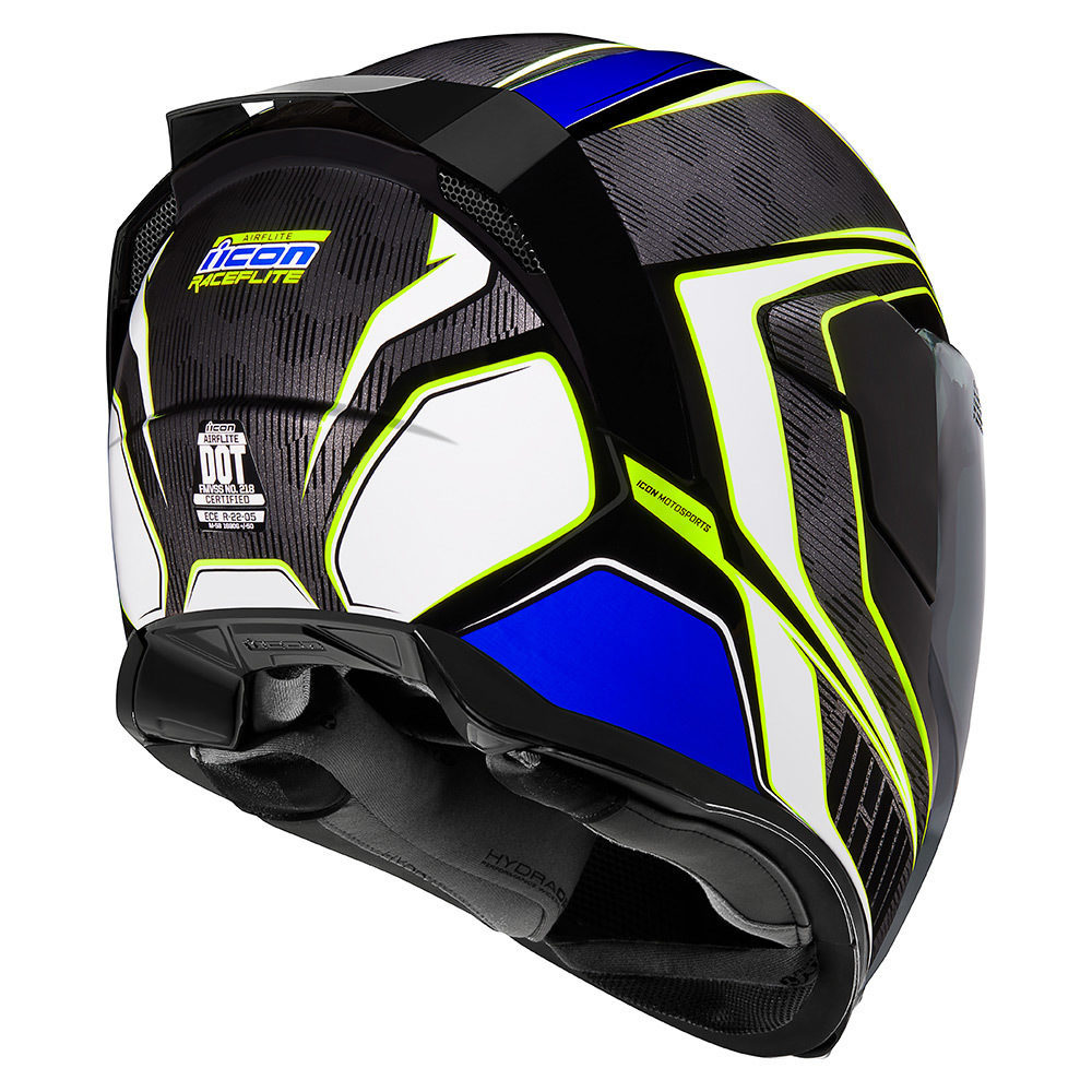 Шлем Icon Airflite Raceflite типа full-face является наиболее надежной моделью для мотоциклистов с точки зрения безопасности. Жесткая верхняя оболочка отлита из легковесного, гибкого и одновременно высокопрочного поликарбоната. Подкладка представляет собой мягкий вкладыш из ячеистого текстиля Hydradry, который легко снимается для удобного очищения или замены.