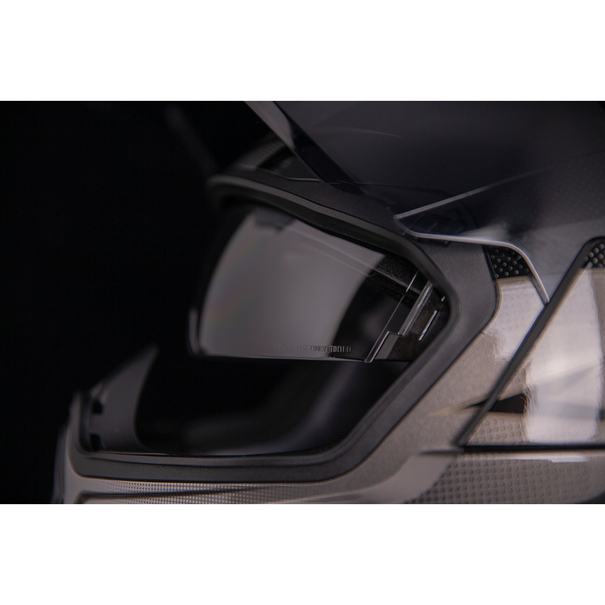 Лаконичный черный интегральный мотошлем Airflite Ultrabolt в комплекте с фирменным внешним визором FliteShield и внутренними солнцезащитными очками Dropshield. На черную поверхность цельнолитой поликарбонатной капсулы нанесена легкая штриховка, повторяющая рисунок защитной металлической сетки воздухозаборников. В затылочной части капсула брендирована полным названием модели – Icon Ultrabolt Airflite. Съемные аксессуары – задний спойлер, боковые панели шлема, дефлектор дыхания – черные.