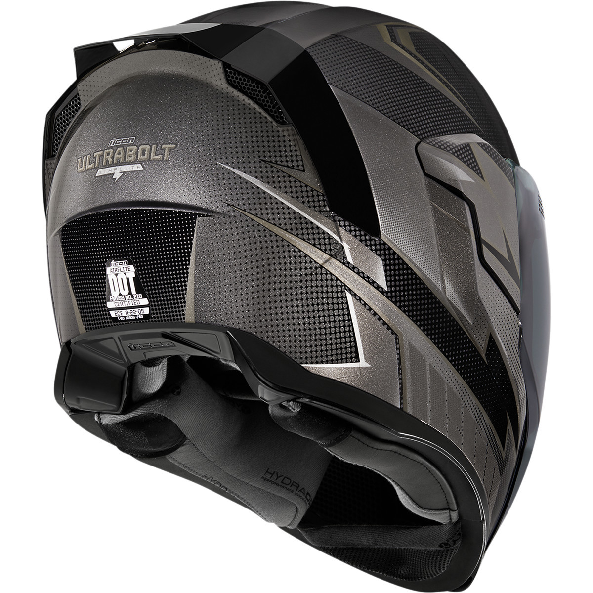 Система вентиляции включает в себя 4+1 воздухозаборника (пятый – вентканал в области подбородка), 2 выпускных клапана и сложную систему внутренних каналов. Дополнительный комфорт достигается за счет быстросохнущей влагоотводящей подкладки Hydradry, которую можно легко снять для замены или обслуживания. Черный минималистичный дизайн можно сделать более выразительным за счет быстрой замены темных аксессуаров на цветные и зеркальные из фирменной коллекции Icon для шлемов серии Airflite.