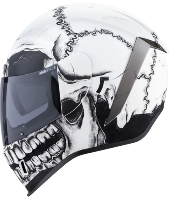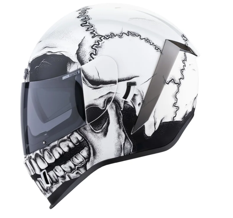 Мотошлем Icon Airform Crestfallen Mips — это не просто мотошлем интеграл, это наследие, высеченное в пепле и скорости, созданное для тех, кто не боится бросить вызов обыденности. Этот шлем в белом цвете с эффектным черным черепом, светящимся в темноте, станет вашим проводником в мир скорости и стиля, обеспечивая бескомпромиссную защиту.