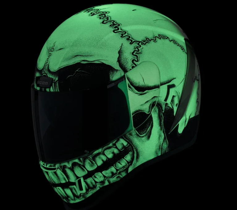 Светящаяся в темноте базовая краска с самым большим черепом, который мы когда-либо вызывали, делает этот мотошлем взрослый по-настоящему уникальным и заметным в любое время суток. Спортивная посадка (промежуточно-овальная головка) идеально подходит для большинства райдеров.