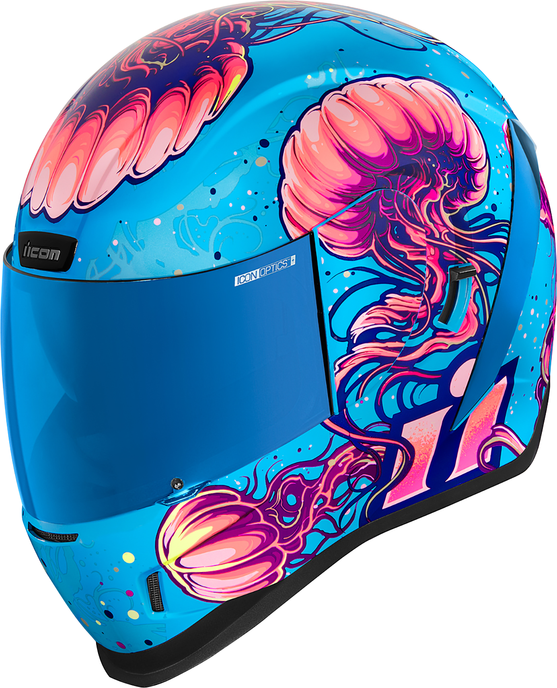 Мотошлем Интеграл Icon Airform Jellies Helmet синий – это оригинальная защитная экипировка универсального назначения с оптимальным сочетанием стильного дизайна, защитного функционала и стоимости. Графическое оформление модели выполнено в тематике подводного мира, где на первом плане выступают медузы, обладающие способностью светиться в темноте. Прочная капсула из литого под давлением поликарбоната в сочетании с внутренним слоем пенополистирола ESP обеспечивают полное соответствие модели требованиям норм DOT и ECE 22-05. Комплектация включает две сменные антизапотевающие защитные маски Clear (прозрачная) и RST Blue (синяя) с системой быстрого сброса и фиксатором Prolock, внутренний выпадающий антибликовый щиток Dark Smoke Dropshield с внешним переключателем, а также съемную трехлойную влагоотводящую подкладку Hydradry.