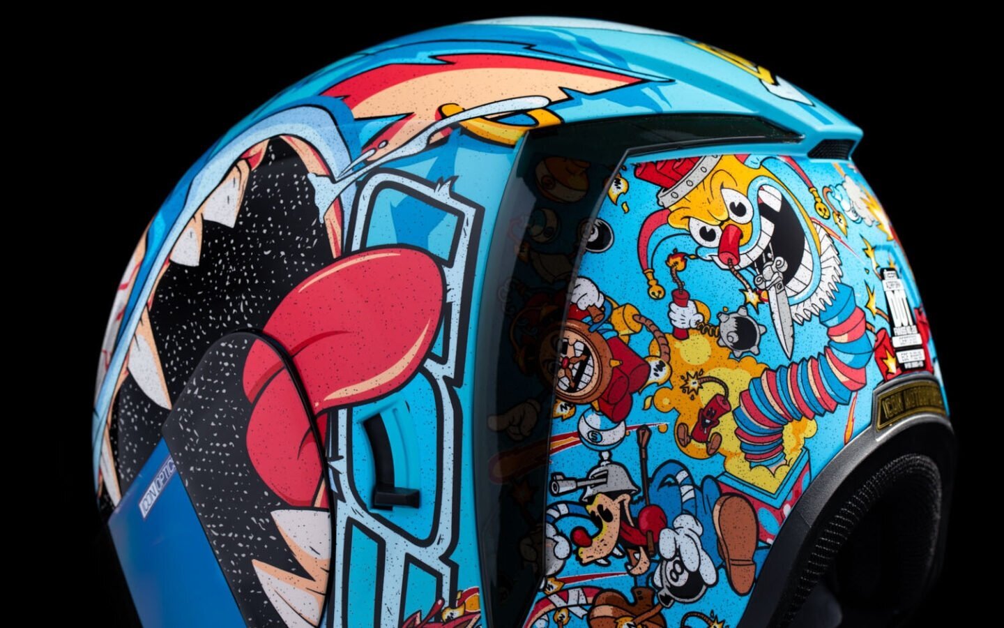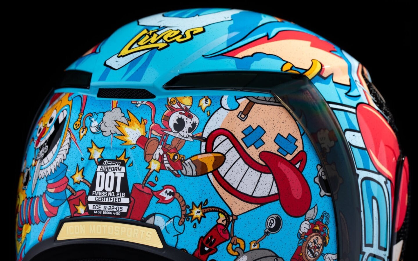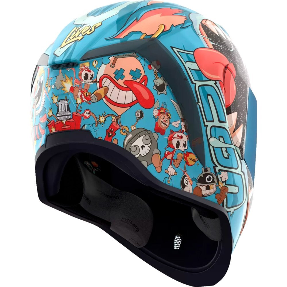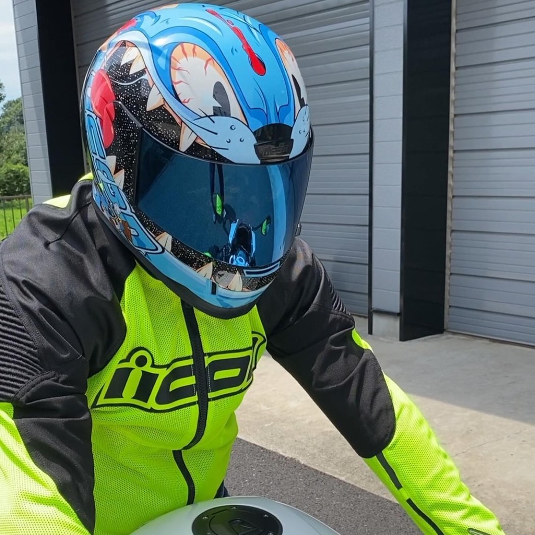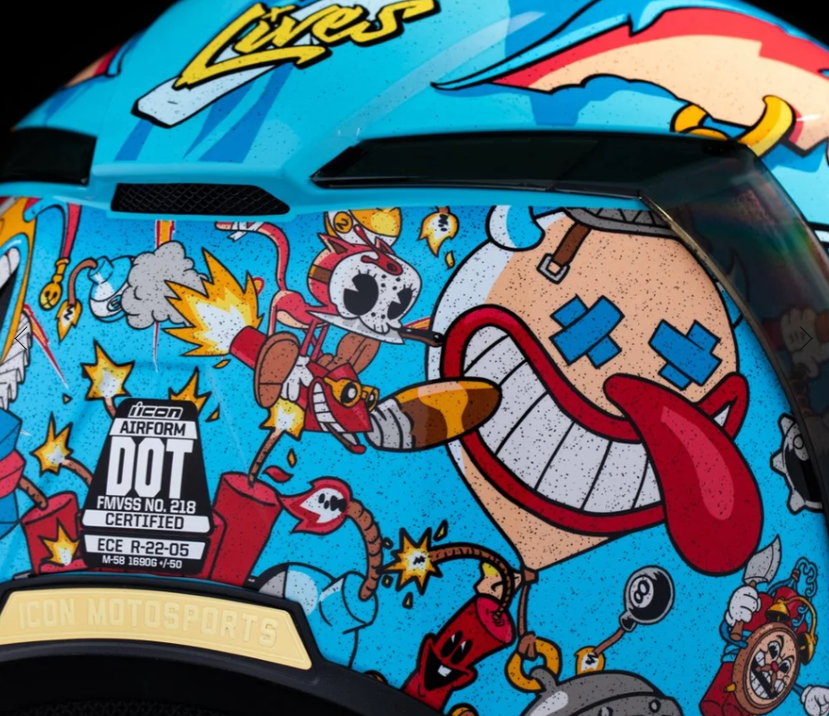 Спортивная посадка (промежуточно-овальная головка) идеально подходит для большинства райдеров. Мотошлем взрослый Icon Airform Mips Nine Lives Blue — это темная версия ваших любимых мультфильмов, которая не только защищает, но и делает вас центром внимания.