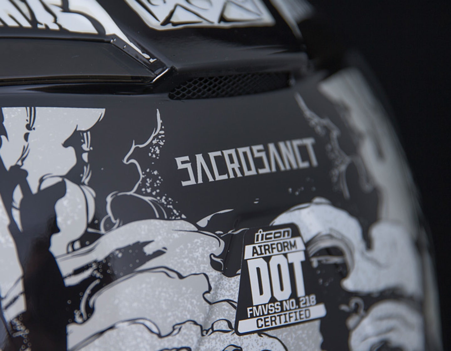 Мотошлем-интеграл Icon Airform Sacrosanct имеет отличные защитные свойства и широкий функционал. Капсула сделана из сверхпрочного поликарбоната, отлитого в специальных формах под давлением. Эффективное отведение влаги и сохранение комфортного внутреннего микроклимата обеспечивается за счет подкладки из материала HydraDry.