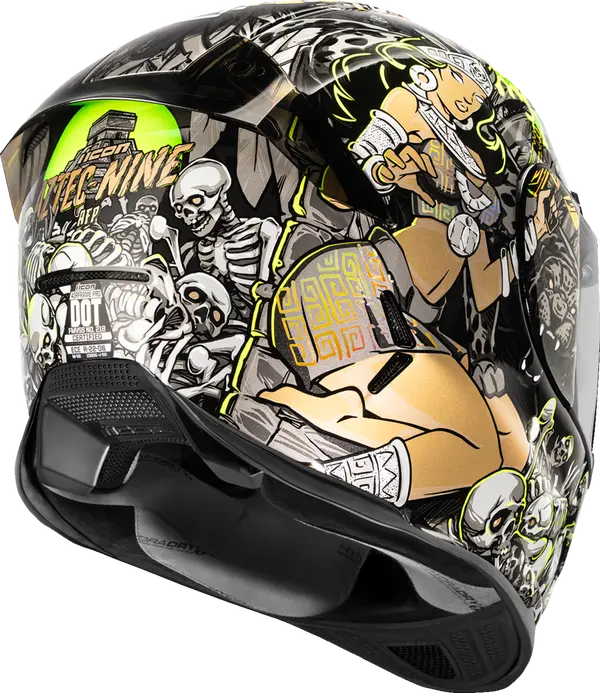 Если ищешь шлем, в котором можно и по городу кататься, и выглядеть круто, присмотрись к Icon Airframe Pro Aztec Nine. Это тот самый интеграл, про который говорят «сделано с душой». Корпус тут — ручная работа из стекловолокна. Не просто легкий, а по-настоящему прочный, и на голове его почти не чувствуешь. Идеально для ежедневных покатушек.