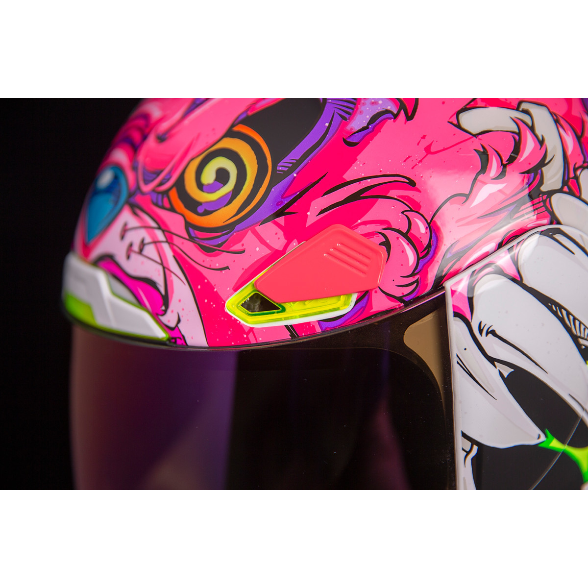 Флагманский шлем Icon 2021 года Beastie Bunny серии Airframe Pro. Имеет яркий розовый футуристичный дизайн с «зубастой улыбкой», которую производитель называет «самой зубастой из всех». Украшен изображением маскота и талисмана компании Icon – Зверского Кролика Банни.