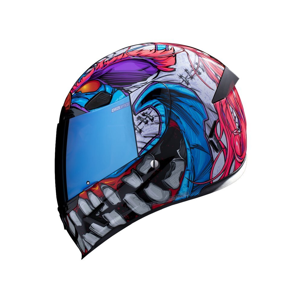 Милое развлечение для детей или источник настоящих ночных кошмаров? Шлем Airframe Pro Krazy Klown поможет вам узнать, у кого из ваших друзей есть коулрофобия, более известная как боязнь клоунов. Под этой приторно-милой графикой, светящейся в темноте, находится сделанная вручную композитная оболочка из стекловолокна (FRP), обладающая максимальной прочностью при минимальном весе. Визор Blue RST Fog-Free Optics позволит вам увидеть мир глазами клоуна.