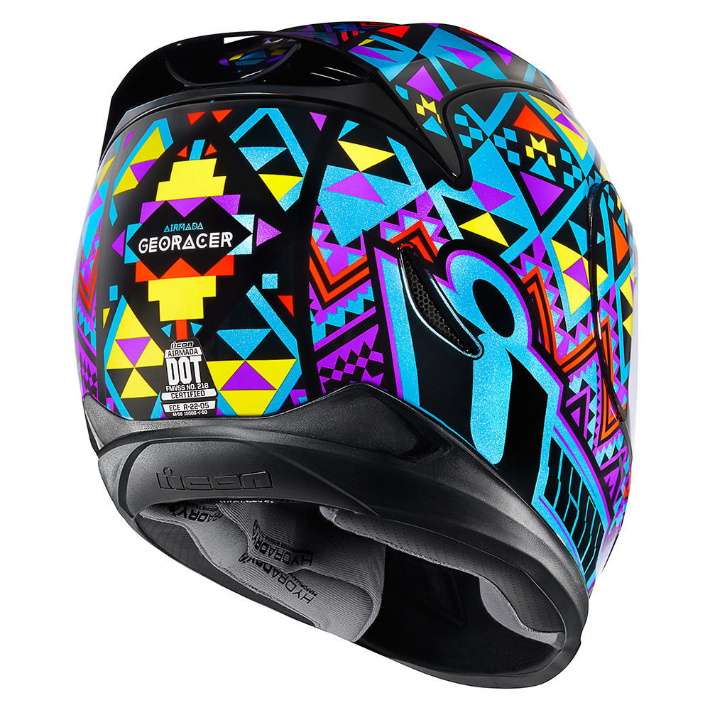 Icon Airmada Georacer — шлем-интеграл от американской торговой марки, выполненный в ярком и стильном дизайне. Сверхпрочная внешняя оболочка из поликарбоната гарантирует максимальную защиту головы от возможных травм. Обтекаемая форма в сочетании с аэродинамическими ребрами и задним спойлером делают мотошлем Айкон идеальным выбором как для езды по городу, так и для путешествий по трассе.