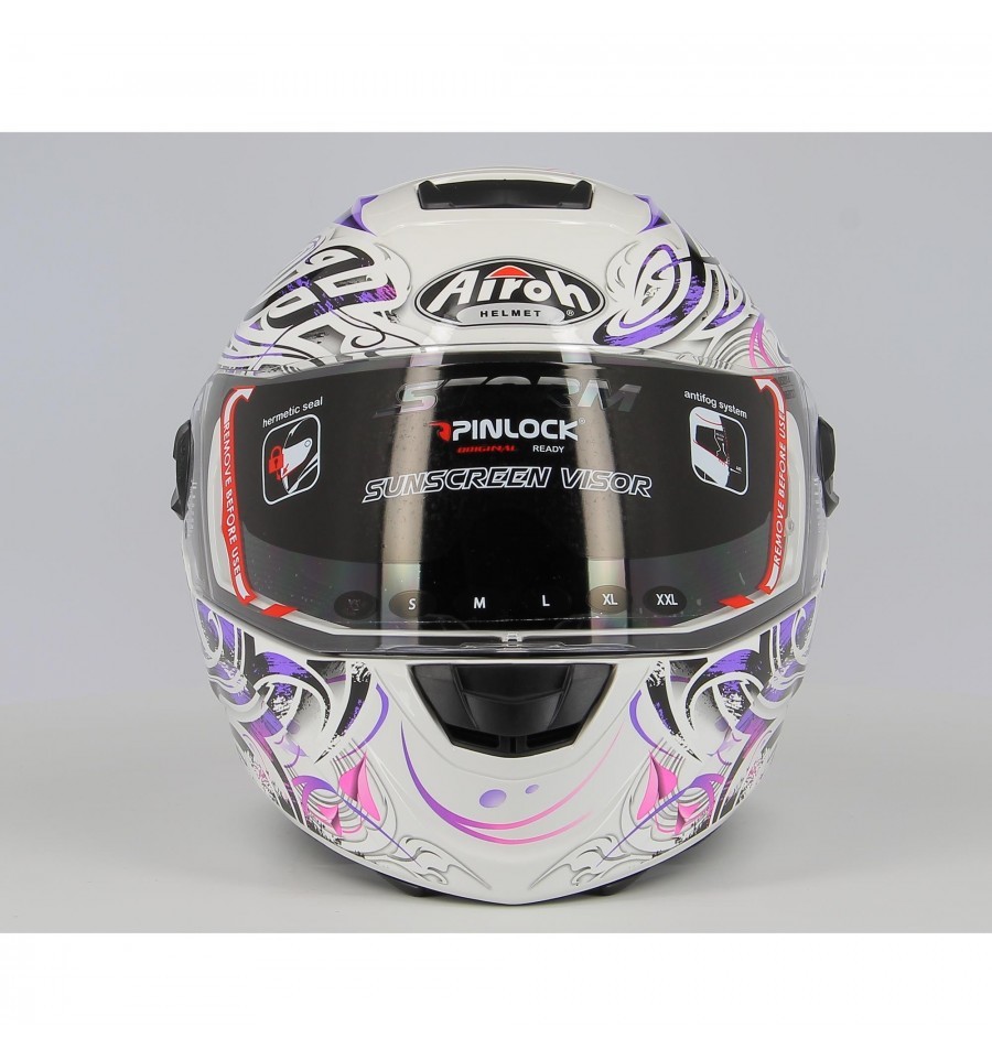 Airoh Storm - интегральный мотошлем, созданный специально для представительниц прекрасного пола. Оболочка из прочного и долговечного термопластика (Thermoplastic HRT) рассчитана на сильные механические воздействия и подходит для эксплуатации в любых условиях. Оригинальный и весьма женственный дизайн обязательно привлечет внимание других участников движения на дороге.