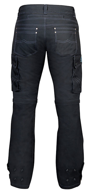 Съемные полиуретановые наколенники и защитные накладки на бедрах оберегают суставы байкера от травм и ударов. А безопасность в ночное время обеспечивают специальные светоотражающие вставки. Модель оснащена шестью карманами по бокам, на бедрах и сзади. Штанины на молнии можно легко отстегнуть в жару и превратить экипировку в удобные шорты. Стильный городской дизайн оценят поклонники классического байкерского стиля. Брюки легко комбинируются с любой обувью.