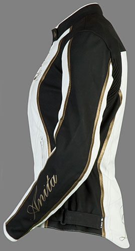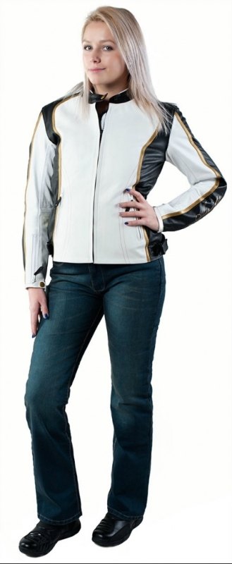 Поликарбонатные протекторы защищают локти и плечи гонщицы от повреждений. На спине расположена мягкая защита позвоночника. Есть возможность установить полноценную усиленную защиту для спины. Модель укомплектована двумя внешними и внутренними карманами, непромокаемой фронтальной молнией YKK, а также змейкой по нижнему краю, которая позволяет объединить мотокуртку с брюками. Поклонницы спортивного стиля оценят нейтрально сочетание черного и белого оттенка, а также стройнящие фигуру линии дизайна.