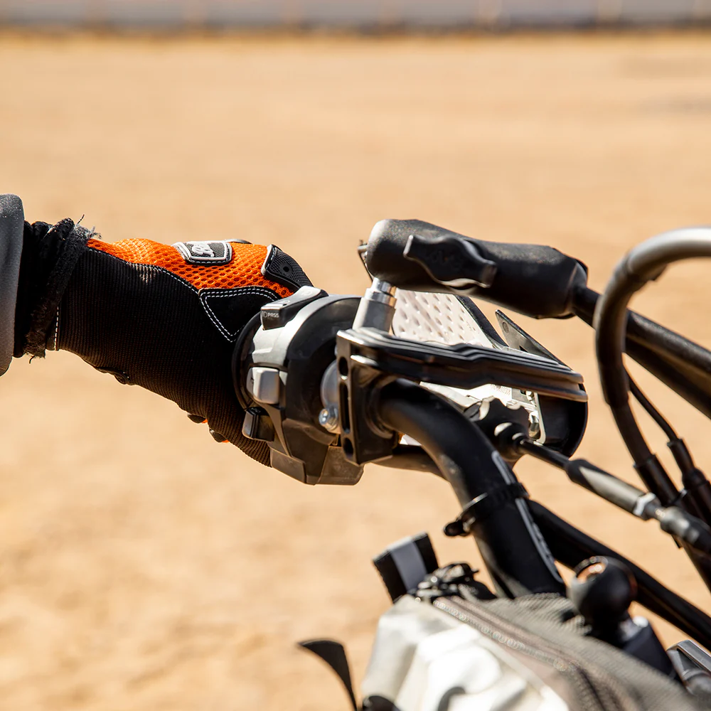 Для максимальной безопасности перчатки оснащены гибкими накладками из термопластичной резины, защищающими костяшки от ударов, камней и дорожного мусора. Скрытая внутренняя защита из неопрена толщиной 5 мм добавляет амортизацию при падениях. Кончики пальцев усилены натуральной кожей для лучшего сцепления. Проводящие швы на пальцах позволяют управлять сенсорными экранами, не снимая перчаток. Регулируемый неопреновый ремешок на запястье защищает от попадания грязи и обеспечивает надежную фиксацию. Прочные одинарные и двойные полиэстеровые швы повышают долговечность даже при интенсивной эксплуатации.