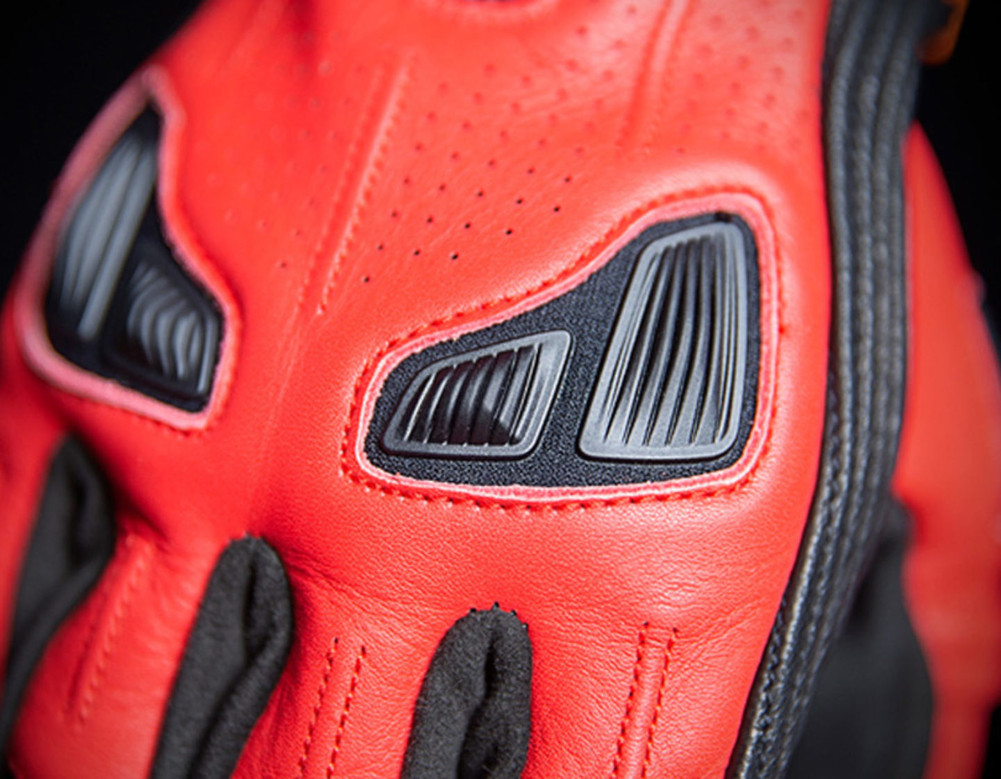 Кожаные мотоперчатки Icon Automag с агрессивным дизайном в двухцветной красно-черной гамме станут завершающим штрихом к летней экипировке байкера. Аксессуар из мягкой и эластичной козьей кожи с перфорацией на тыльной стороне защитит руки от обветривания и солнечных ожогов. Гибкие вставки из специального полимера D3O, размещенные в области костяшек, предотвратят травмы верхних конечностей в случае ДТП.