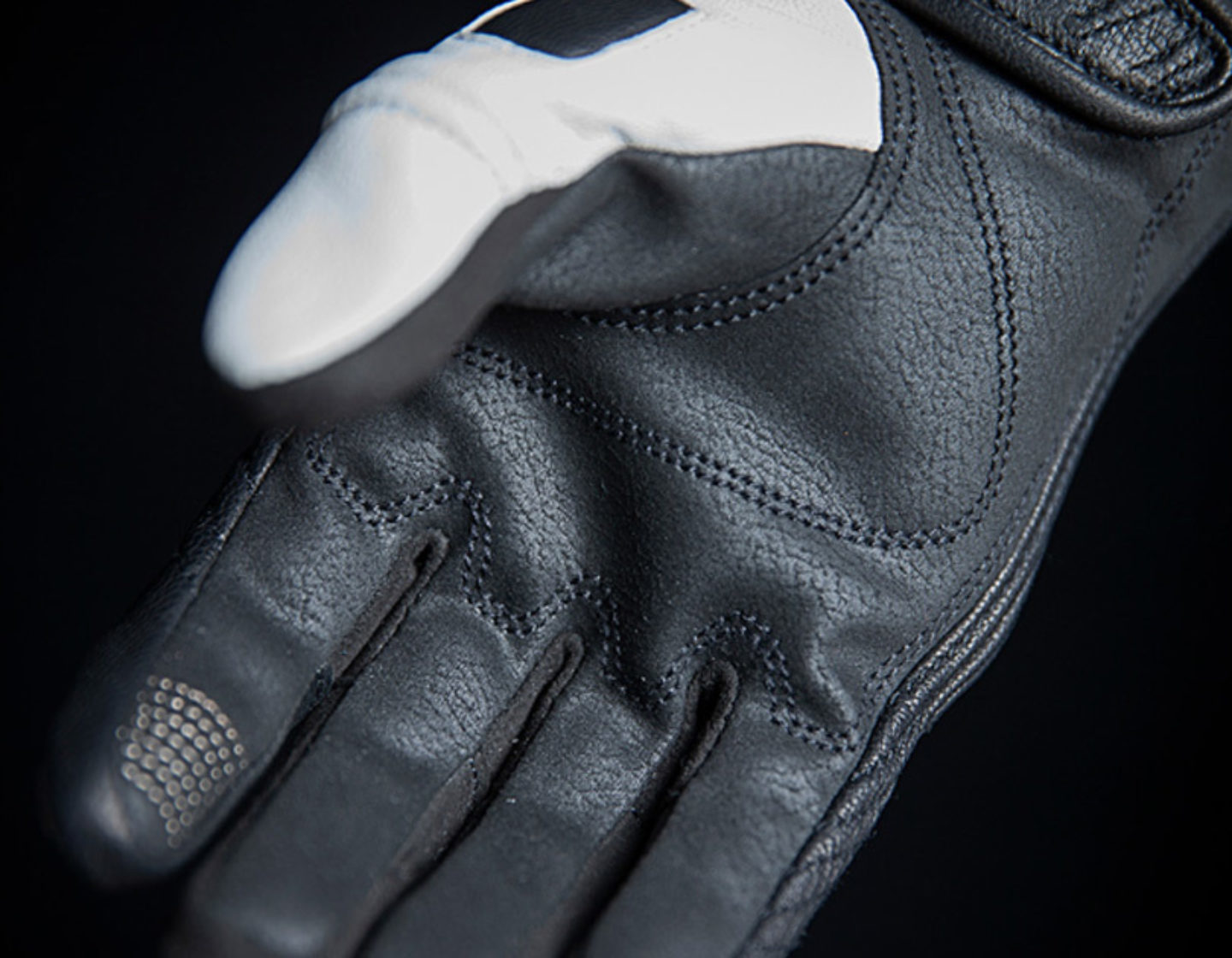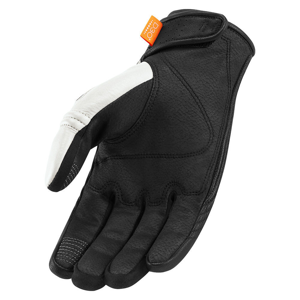 Противоударные протекторы из упругой пены D3O расположены в области костяшек и усилены накладками из термопластичного материала. Усталость рук от нахождения в изогнутом положении сводится к минимуму за счет рифленых вставок и зон повышенной эластичности. Благодаря строчному декору на внутренней стороне сенсорные экраны различных устройств легко реагируют на прикосновение пальцев в перчатках.