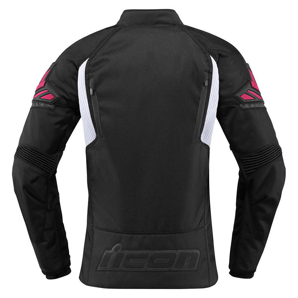 Женская спортивная мотокуртка Icon Automag 2 имеет прочную текстильную основу, которая устойчива к механическим повреждениям. Зоны спины, локтевых и плечевых суставов покрыты вставками из толстых нейлоновых волокон, которые не стираются и не рвутся долгое время. Для дополнительной защиты травматичных частей тела в специальные карманы вставляются протекторы из биогубки D3O (входят в комплект).
