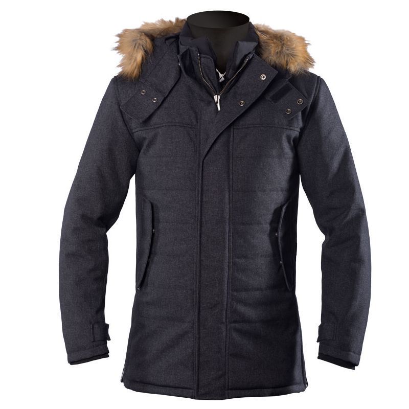 Модель оснащена съемным капюшоном с меховой оторочкой, которая красиво смотрится на сером фоне. Поликарбонатные протекторы на локтях, плечах и спине защищают райдера от неожиданных травм. Изогнутый рукав облегчает посадку за руль. Для увеличения подвижности по бокам вшиты молнии. Манжеты с петлей для большого пальца не пропускают холодный воздух внутрь.