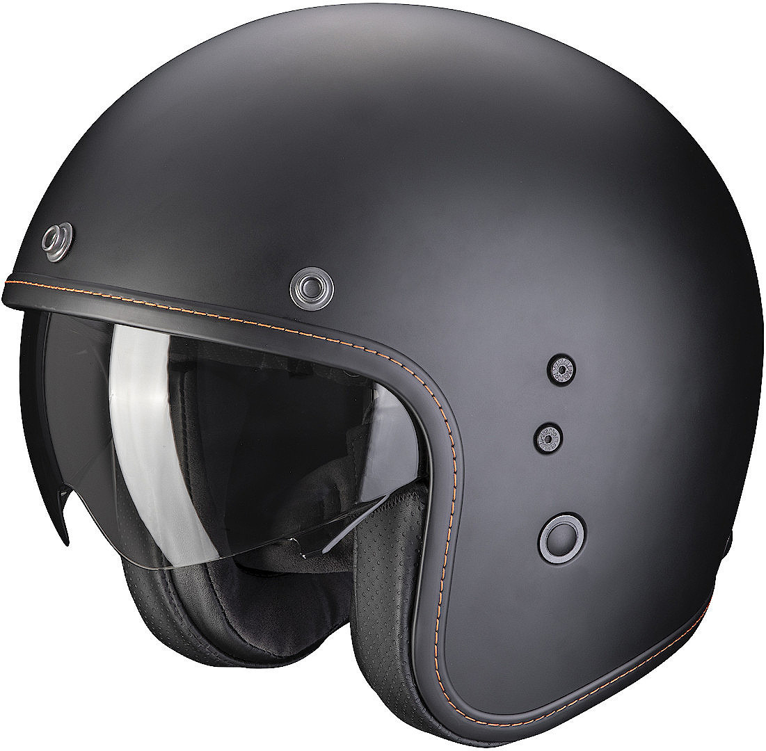 Черный мотошлем SCORPION EXO BELFAST EVO в стиле ретро обладает всеми достоинствами современных моделей. Прочная оболочка выполнена из композита на стекловолоконной основе. Уникальная технология Thermodynamical Composite Technology гарантирует высокую степень защиты – корпус поглощает кинетическую энергию при механическом ударе и остается впоследствии целым. В качестве подклада используется ткань KwikWick, обеспечивающая комфортный микроклимат. В таком шлеме прохладно летом и тепло зимой.