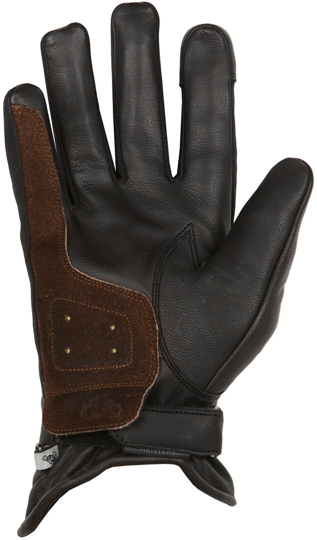 Модель имеет удобную укороченную манжету, которая с тыльной стороны фиксируется липучкой Velcro. Для защиты пальцев и ладони используются кожаные накладки, полностью армированные кевларом. С наружной стороны перчатки украшены черным шевроном с логотипом бренда. Кожа толстая и прочная, но мягкая, обработанная влагозащитной пропиткой. Модель сертифицирована по 1 классу безопасности стандарта ЕС.