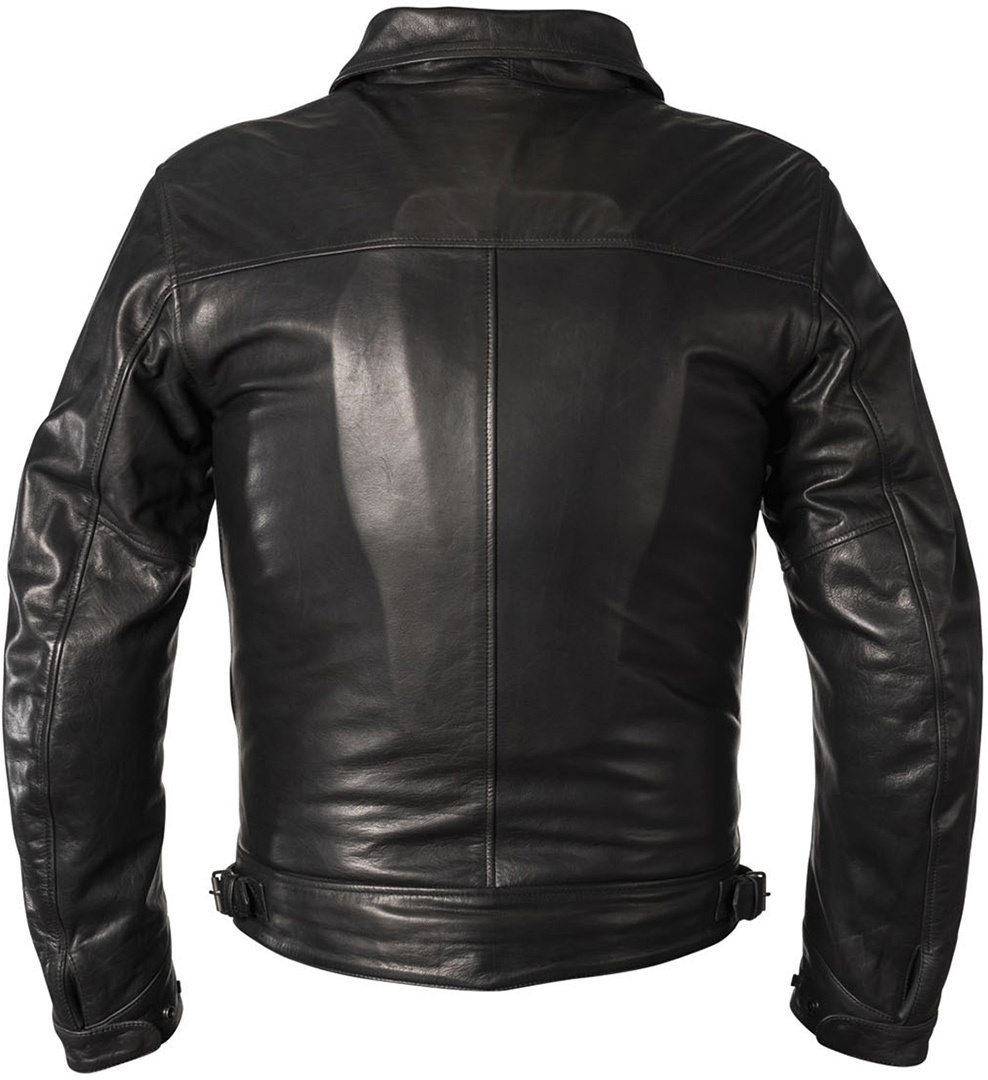 Мужская мотокуртка Helstons Bill Cuir Natural из толстой воловьей кожи черного цвета. Кожа мягкая, гладкая, толщиной более 1 мм, устойчивая к истиранию и обработанная огнезащитной пропиткой. Для защиты от дождя используется влагоотталкивающая мембрана.