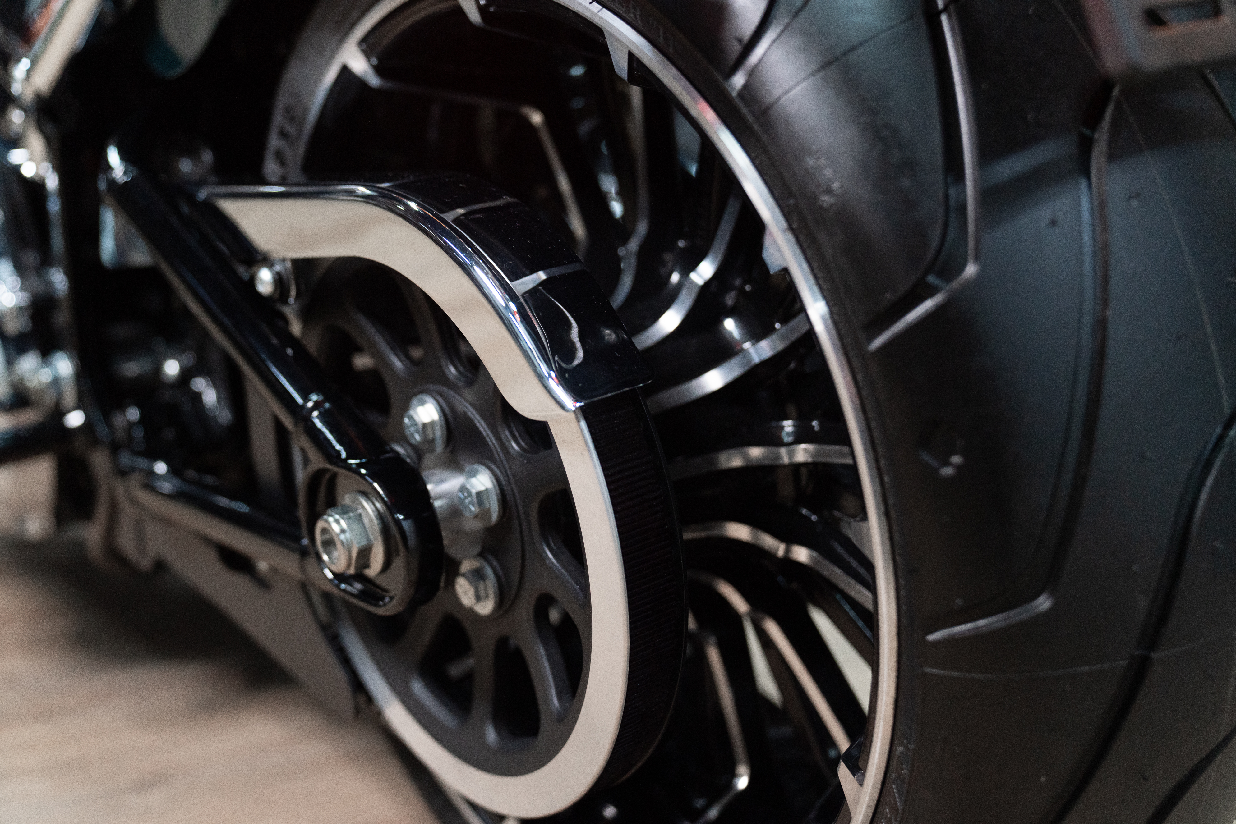 21-дюймовые передние и 18-дюймовые задние литые алюминиевые диски имеют 26 спиц с черной отделкой и механическими деталями.