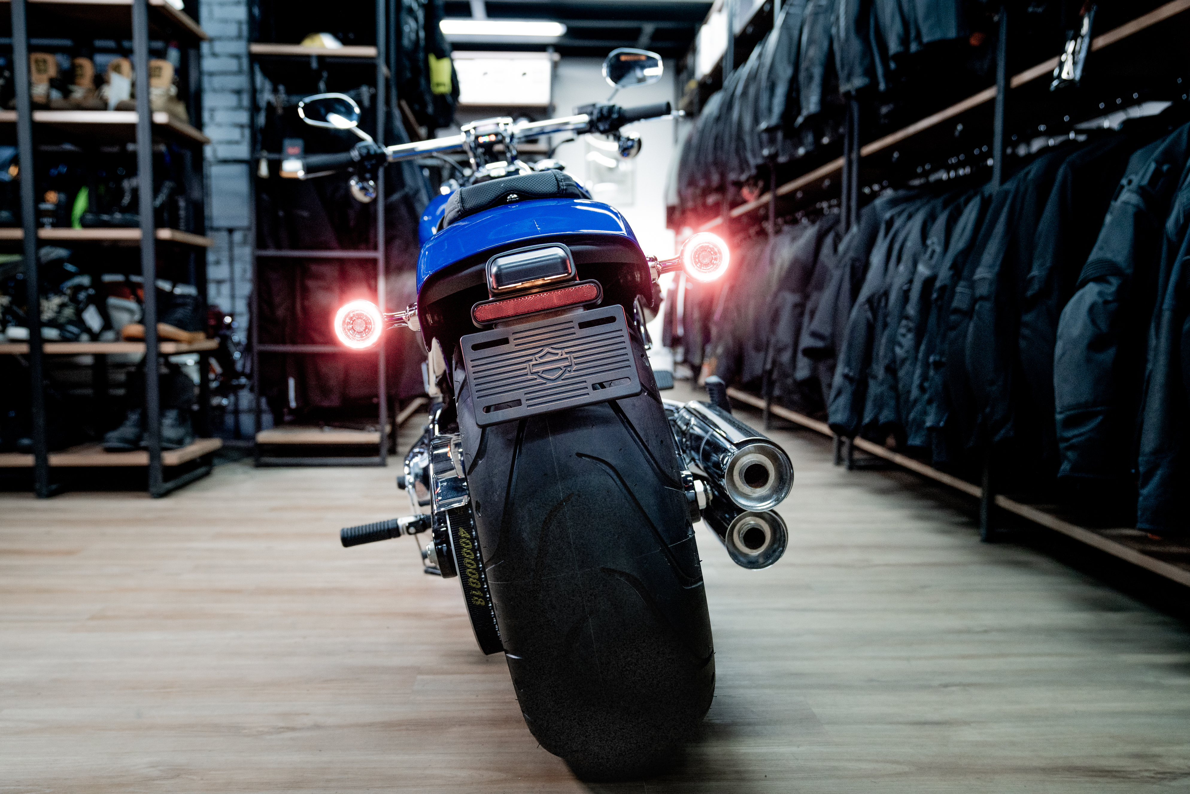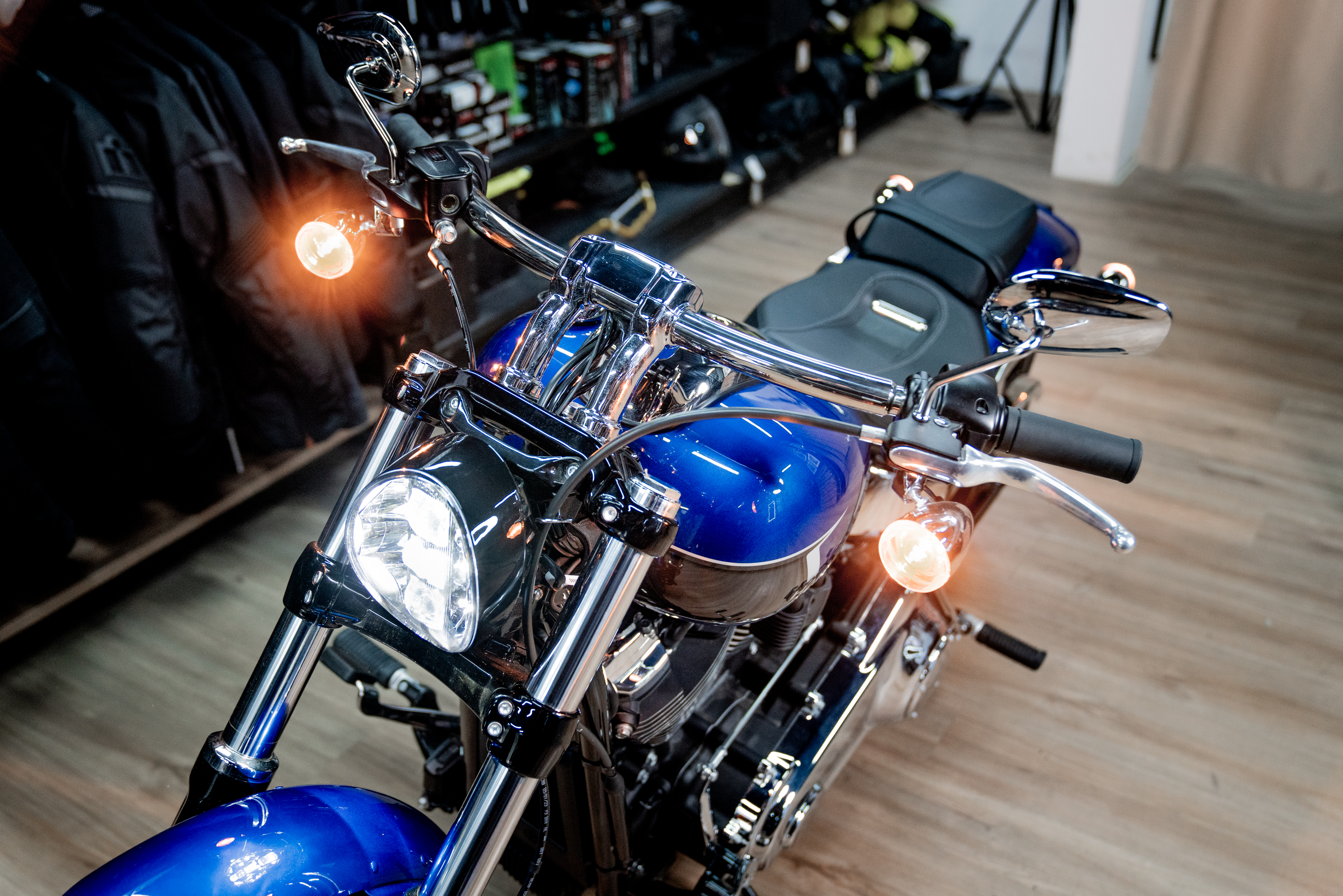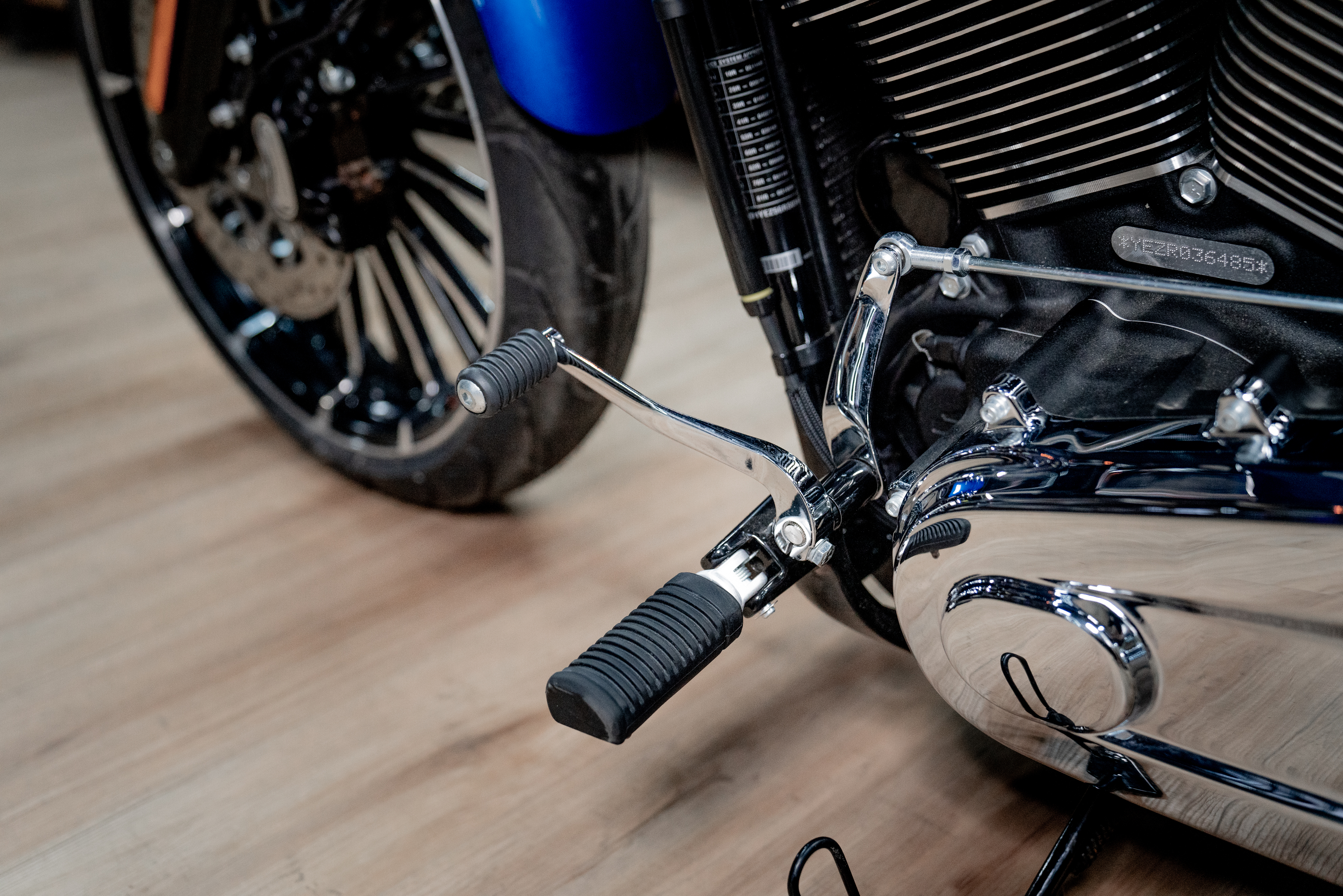 Подчеркните вашу индивидуальность в уникальном цвете Blue Burst. Harley-Davidson Breakout 117 украшенный хромом, представляет собой крутой круизер с мускулистым двигателем Milwaukee-Eight 117 V-Twin и широким задним колесом.