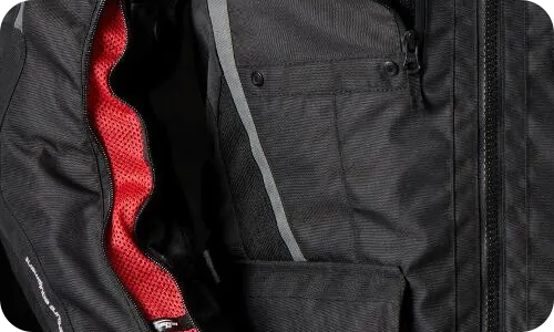 Ключевая особенность этой защитной мотокуртки — её трёхслойная система (3in1). Съемная дышащая мембрана (10К/10К) надежно защищает от дождя и ветра, а термоподкладка сохраняет тепло. В жаркую погоду вы легко можете их удалить. Обновлённая система вентиляции AFS Max с регулируемыми каналами на спине, плечах и рукавах обеспечивает мощный приток воздуха, предотвращая перегрев. Куртка изготовлена из высокопрочного полиамида с водоотталкивающей пропиткой, что гарантирует долговечность. Защита соответствует высочайшим стандартам: куртка оснащена сертифицированными вставками D3O на плечах и локтях, а также имеет карман для дополнительной защиты спины.