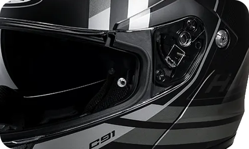 Шлем предлагает максимум удобства: откидная часть управляется одним рычагом, что позволяет легко пользоваться им даже в перчатках. Встроенный солнцезащитный визор с ручной регулировкой защищает от яркого света, а эффективная система вентиляции — большое верхнее отверстие и глубокие каналы — поддерживает комфортную температуру. Антибактериальная подкладка SuperCool отводит влагу, сохраняя ощущение свежести. Эта модель совместима с гарнитурами SMART HJC 10B и 20B, что делает её готовым решением для общения и навигации.