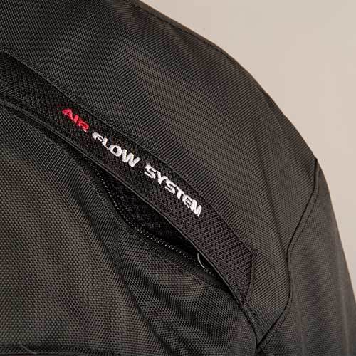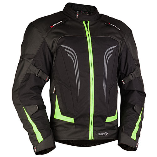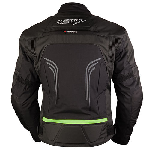 Изделие выполнено из прочной ветрозащитной ткани AIRDURA ®. Материал подкладки — антисептический 100% полиамид. Система вентиляции включает два кармана на плечах и один в верхней части спины. Плечевые и локтевые защитные вставки сертифицированы СЕ. Мотокуртка имеет 2 внешних кармана и 1 внутренний. Светоотражающие вставки зеленого цвета повышают безопасность байкера на дороге.