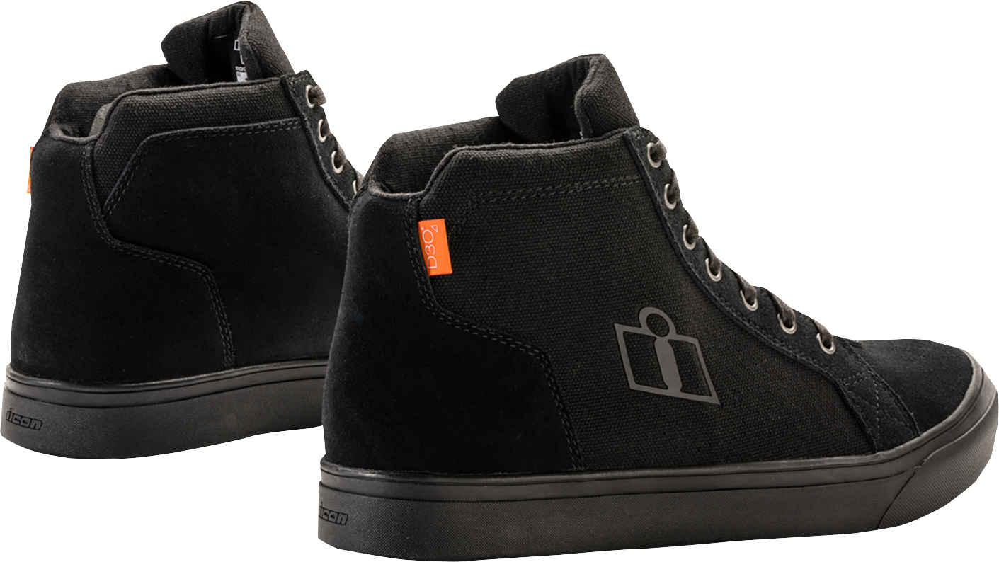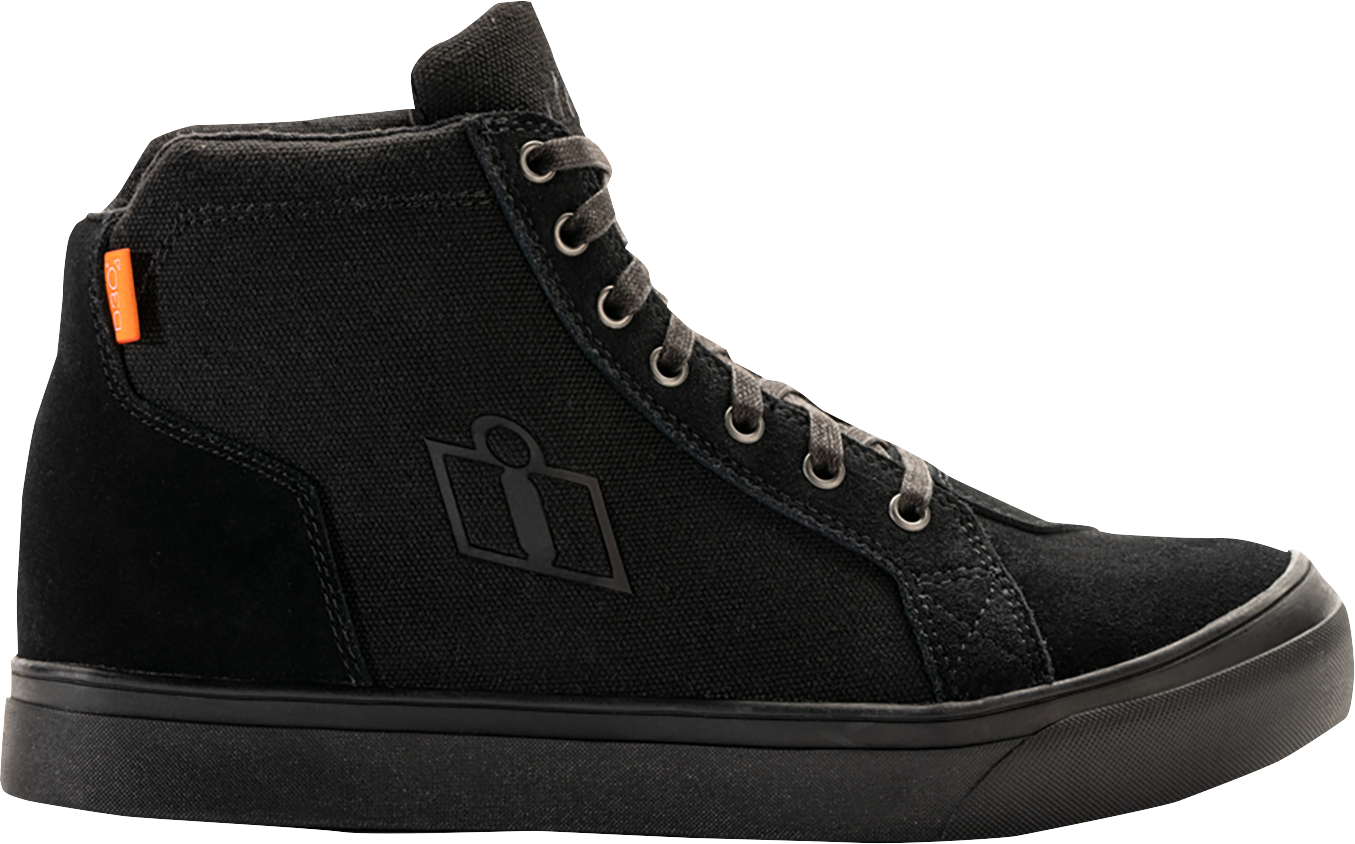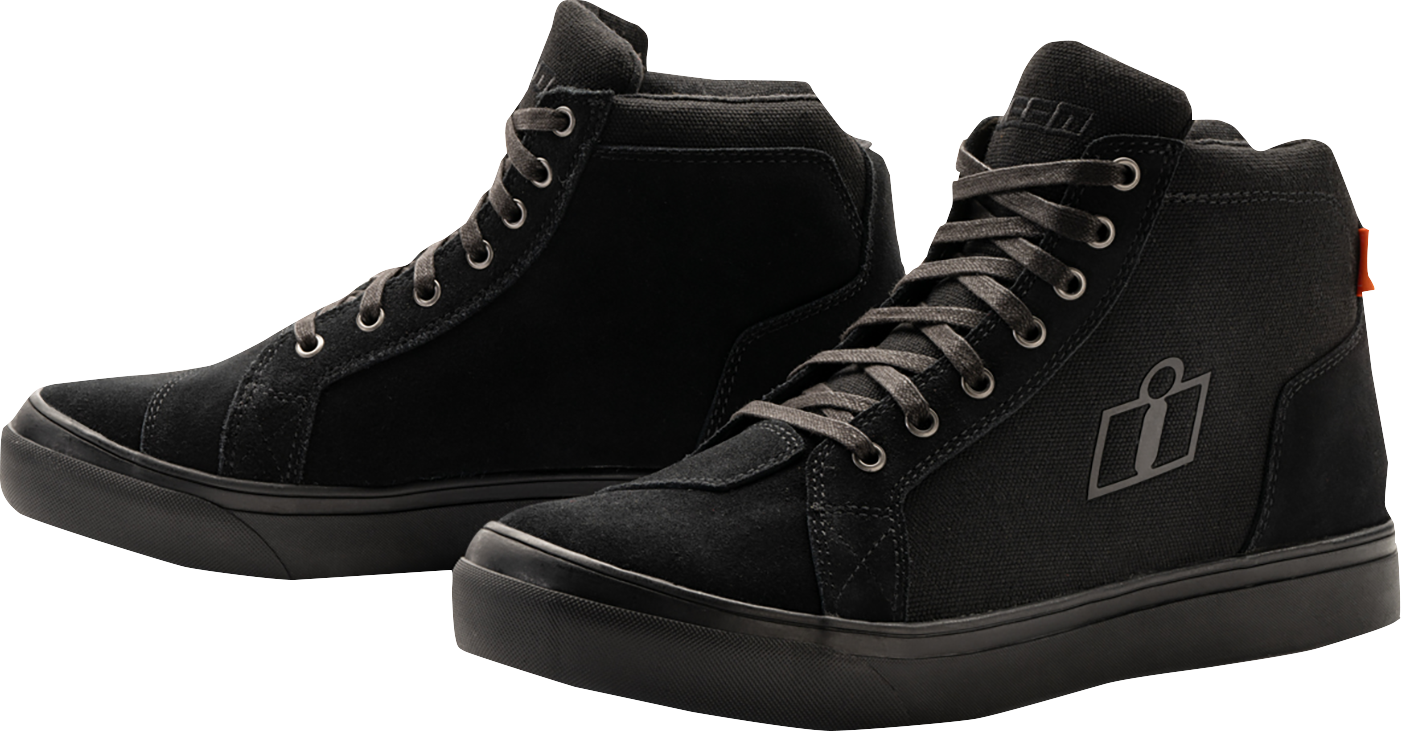 Черные мужские короткие мотоботы Icon Carga Boots выглядят как модные кеды для скейтборда или городских стиляг, но при этом являются полноценной защитной экипировкой байкера, всегда готовой к дороге. Верх из комбинации натуральной кожи нубук и плотного полиэстера обеспечивает реальную практичность и высокие эксплуатационные характеристики. Защитные протекторы D3O на щиколотках уменьшают передаваемую ударную нагрузку, а маслостойкая и нескользящая резиновая подошва гарантирует уверенность при выполнении любых трюков.