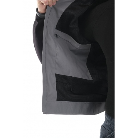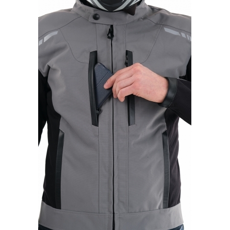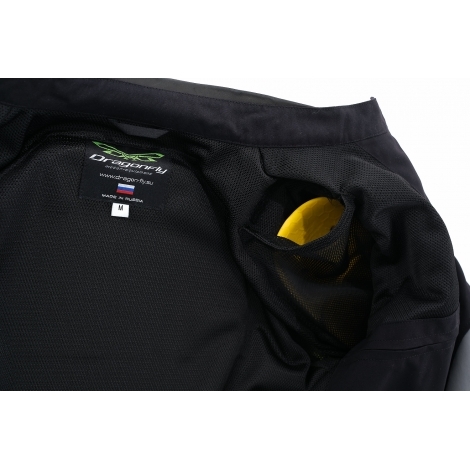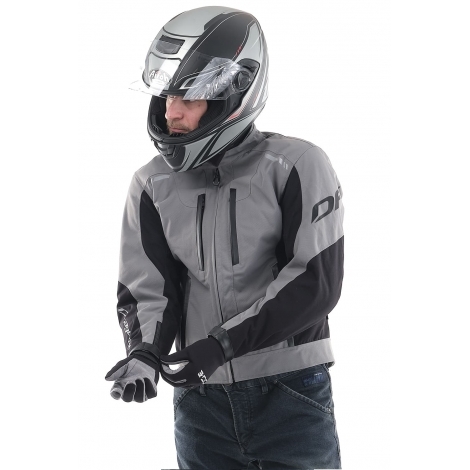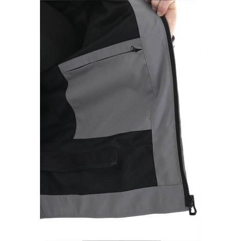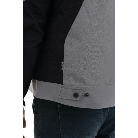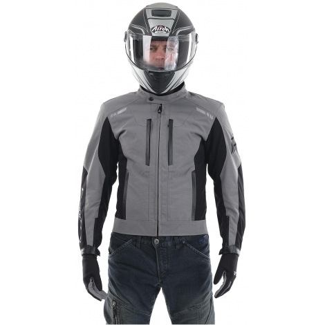 Модель сшита из прочного износостойкого нейлона Oxford с функциональными пропитками. С лицевой стороны – водоотталкивающая пропитка WR и двухслойный CIRE-блеск. С изнанки – PD-покрытие (для прочности) и полиуретановое покрытие PU (для влагостойкости). Крой учитывает изгиб в локте и другие особенности посадки на мотоцикле. Для защиты суставов на плечах и локтях встроены ударопоглощающие вставки SAS-TEC (Германия). Спина защищена пенной вставкой (в базовой комплектации), которую при желании можно заменить сертифицированной SAS-TEC SC-1/14XL.