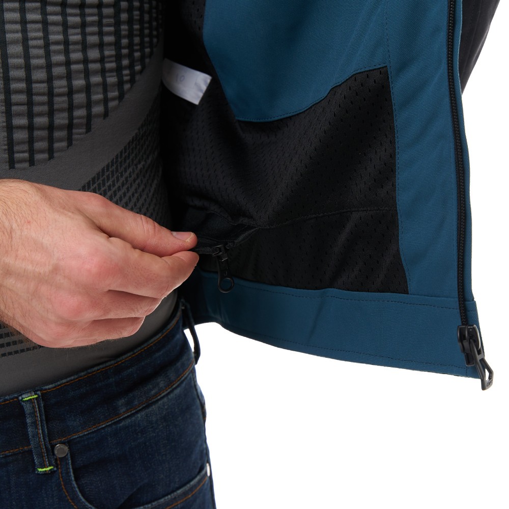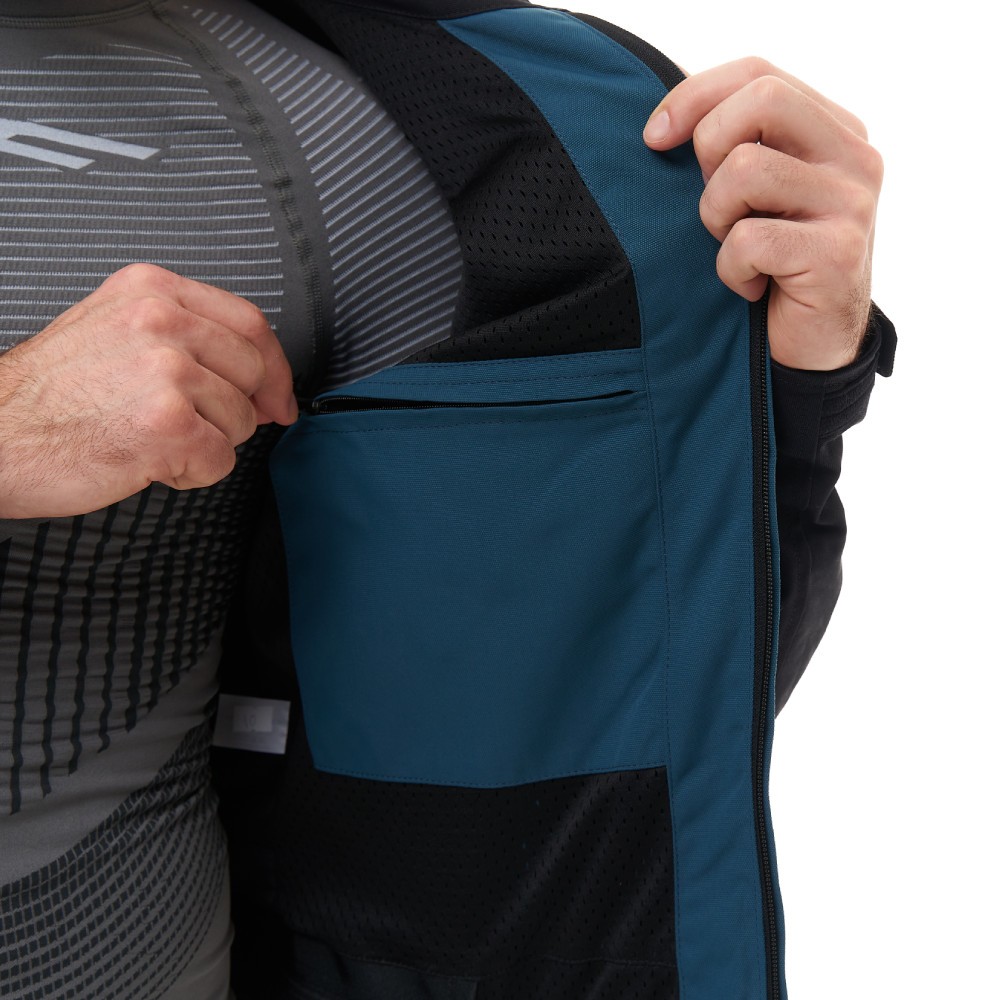 Главное преимущество модели — интегрированная защита. Защитная мотокуртка оснащена турецкими протекторами премиум-класса ImpacTec из вязкоупругой пены, которые сохраняют свои свойства даже после удара. Уникальная система регулировки защиты локтей в четырех направлениях позволяет идеально адаптировать куртку под анатомию райдера. Для тех, кто планирует купить максимально безопасный комплект, предусмотрен карман для установки защиты спины. Благодаря эргономичному крою, куртка для мотоцикла не сковывает движений и учитывает специфику посадки на байке или скутере.