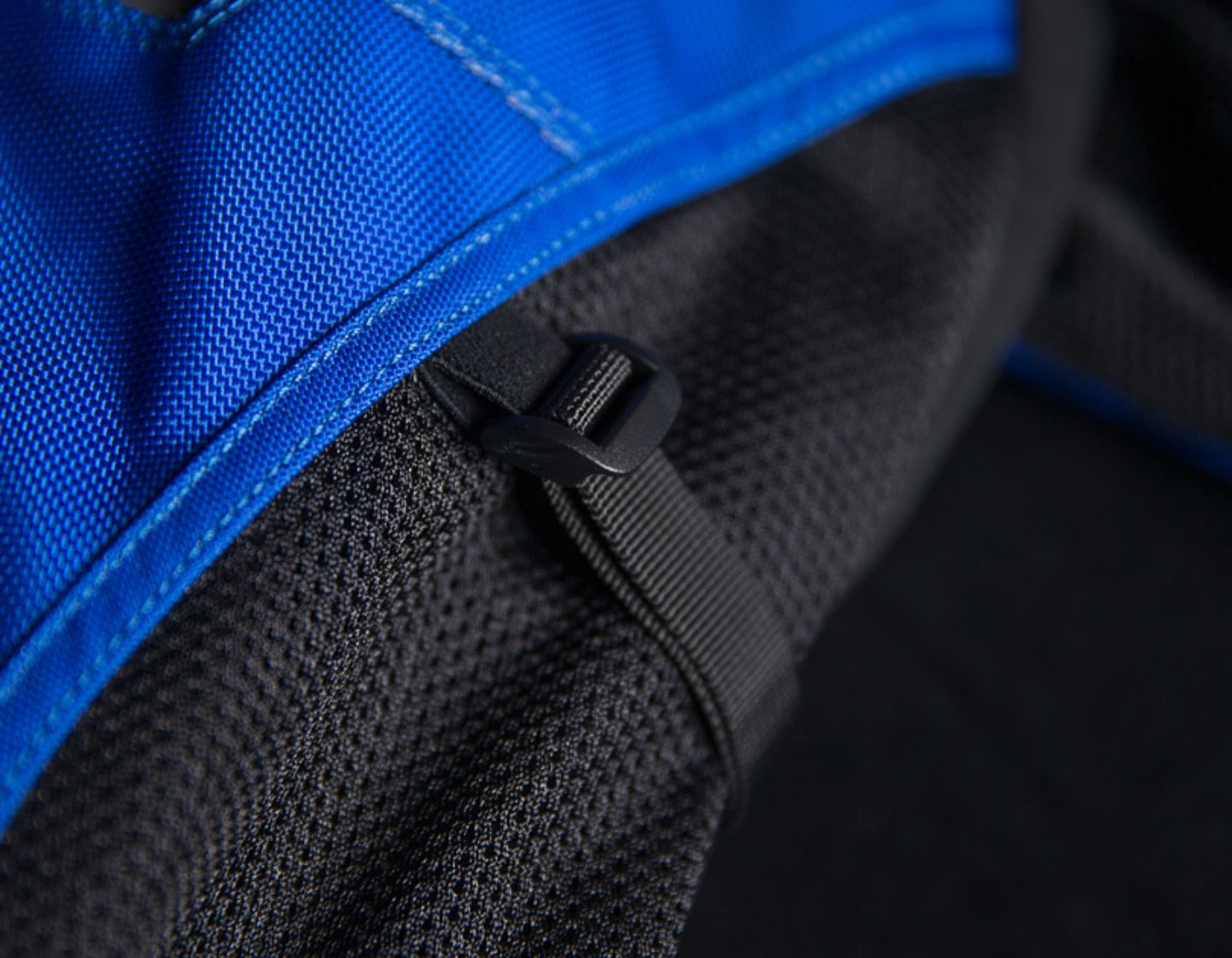 Летняя туринговая мотокуртка Icon Contra 2 с сине-черной расцветкой разработана для прогулок на байке за городом и повседневной езде по городским улицам. Модель с анатомическим кроем рукавов изготовлена из прочного текстиля. Съемные защитные вкладыши из гелеобразного материала D3O, который моментально твердеет при ударе, уменьшают вероятность получения травм плеч, локтей и позвоночника в случае падения с мотоцикла.