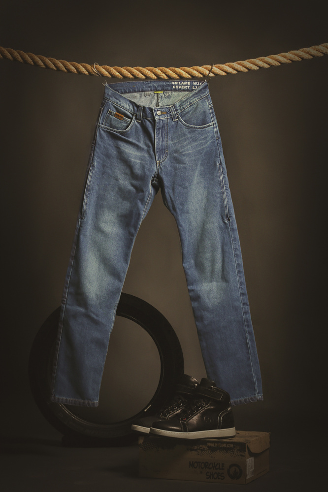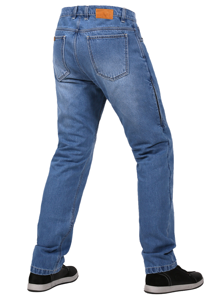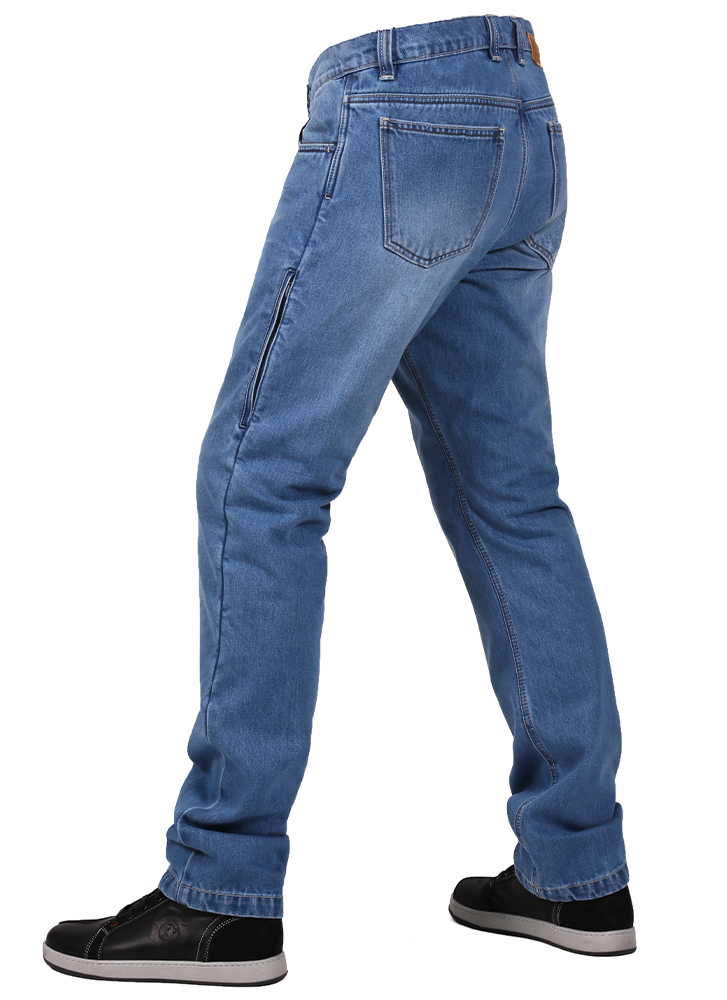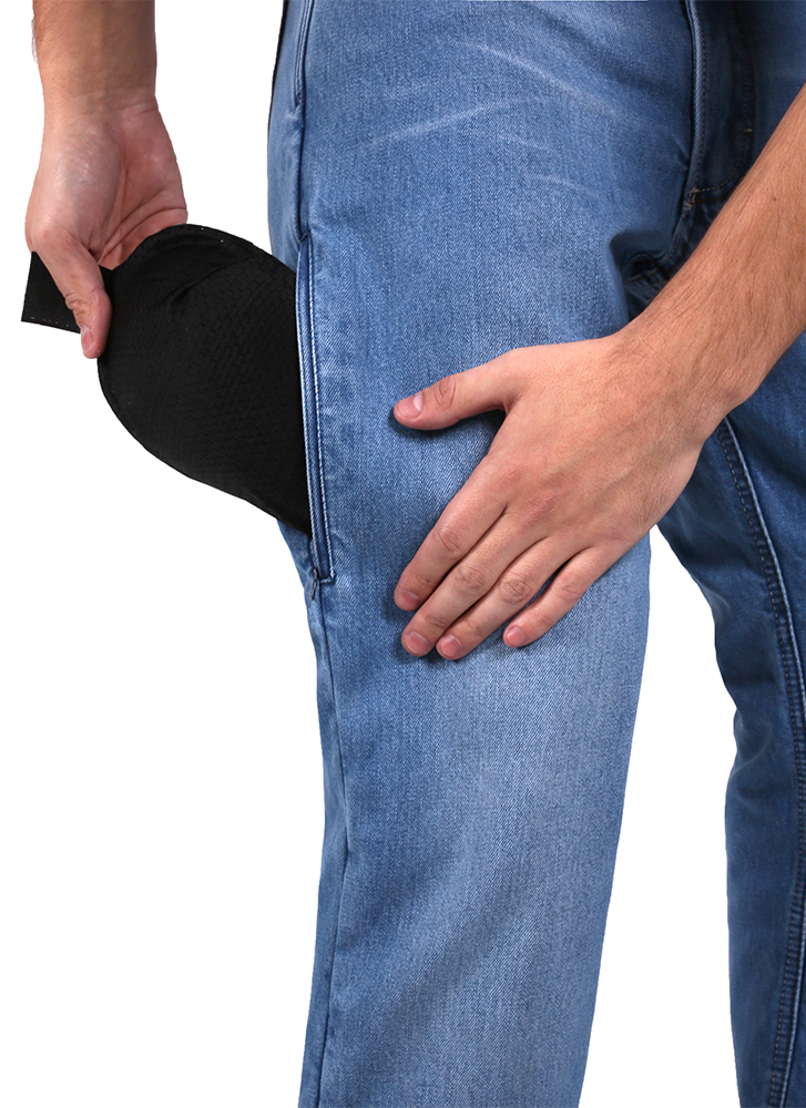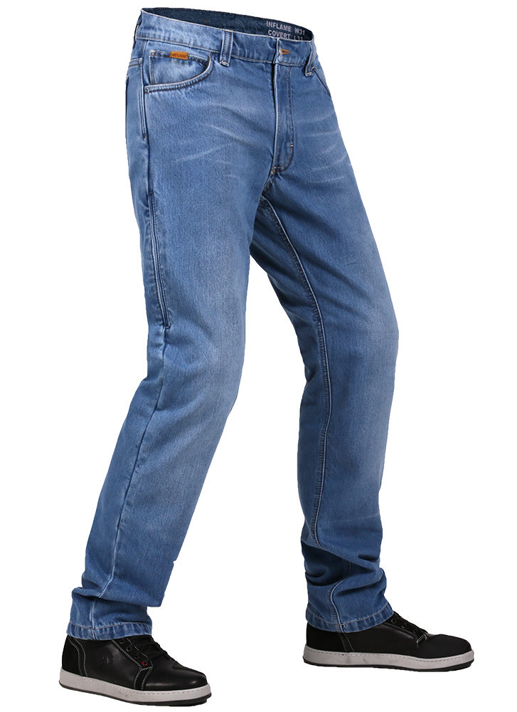 Голубые мужские летние джинсы мотоциклиста INFLAME Covert пошиты в классическом стиле из высококачественного деним-коттона высокой плотности. Штаны обеспечат уверенность и удобство своему владельцу как при езде, так и в любых обыденных ситуациях. В особо уязвимых участках и местах повышенной нагрузки модель усилена износоустойчивыми и термостойкими арамидными волокнами. В базовый комплект включены сертифицированные ультра-легкие защитные наколенники Powertector HEX PRO-EK Level 2 из биоэластана и мягкие бедренные вставки, причем первые просто и быстро вставляются с внешней стороны через боковой врезной карман на молнии, который также служит вентиляцией в жаркое время.