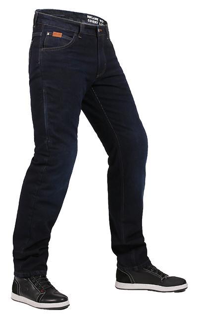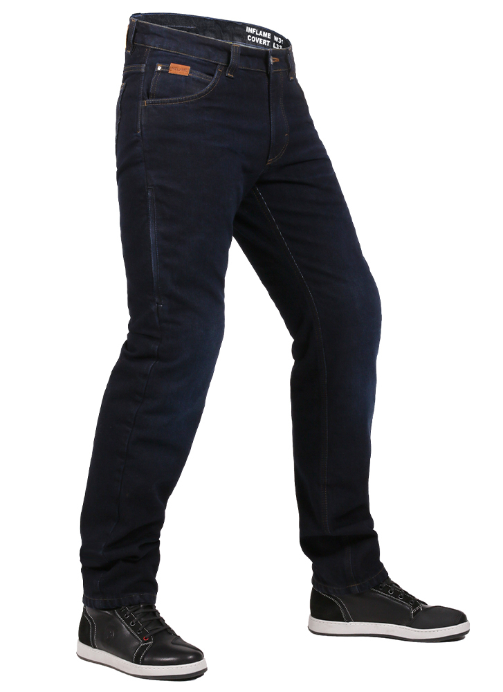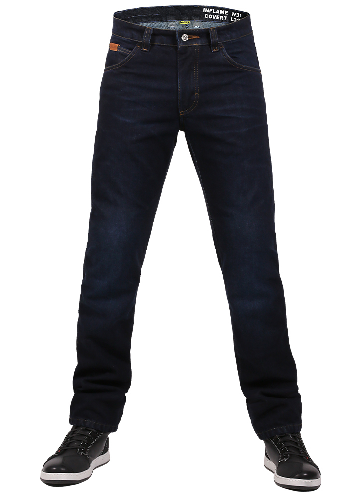 Мужские текстильные летние мотоджинсы Inflame Covert WaterProof синего цвета для поездок на недальние расстояния. Внешне не отличаются от обычных джинсов, при этом обеспечивают необходимый уровень защиты при городской езде. Выверенный крой со слегка завышенной талией со стороны спины обеспечивает достаточную свободу движений, одновременно не допуская продувая поясницы. Штанины средней ширины. В зонах, подверженных риску при падении, модель усилена термостойкой арамидной тканью, устойчивой к истиранию. Дополнительный плюс модели – водо- и грязеотталкивающая пропитка HORL-system.