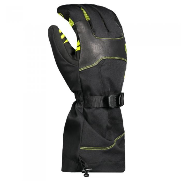 Мужские перчатки Cubrick компании Scott созданы для длительных путешествий на снегоходе в холодную погоду. Они прекрасно греют руки в морозы и не сковывают подвижность пальцев. Эластичная прилегающая ткань и изогнутый крой облегчают хват. Лаймово-зеленые силиконовые полоски на ладони улучшают сцепление с рулем и придают черным мотоперчаткам модный вид.