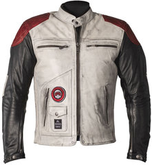 Мужская кожаная мотокуртка Helstons Tracker Cuir Rag из премиальной воловьей кожи черного, белого и красного цветов. Мотокуртка имеет множество декоративных деталей и шевронов, которые делают ее яркой, уникальной и запоминающейся. Модель комплектуется съемным жилетом из термоалюминия и несъемной подкладкой из высокотехнологичного текстиля OUTLAST, способного распределять и сохранять тепло даже в условиях повышенной влажности. Белая кожа слегка тонирована для придания винтажного стиля. Модель приталенная, подгоняется по фигуре ремешками-утяжками. Спереди - 5 карманов с молниями и клапанами. Стеганые плечевые накладки и шевроны - красного цвета.