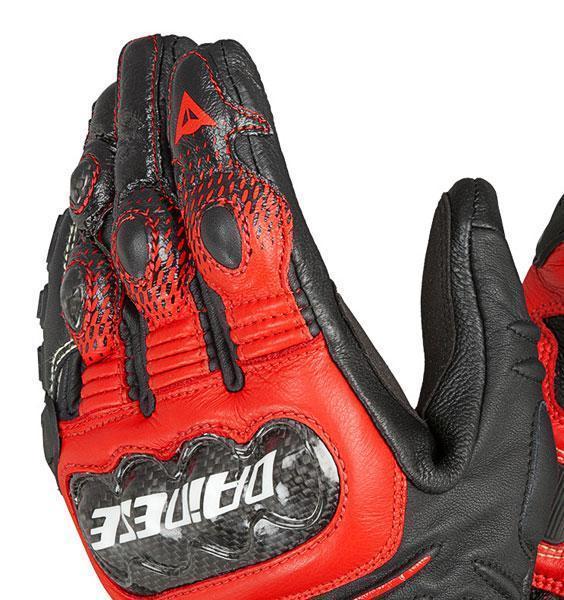 Дополнительную прочность придает ткань Spandura, использованная в областях повышенной нагрузки. Циркуляцию воздуха обеспечивают отверстия на внутренней стороне мотоперчаток. За безопасность отвечают: карбоновые защитные вставки в зоне костяшек и на суставах пальцев, полиуретановые накладки на ребре ладони, а также слайдеры на мизинце и манжете.