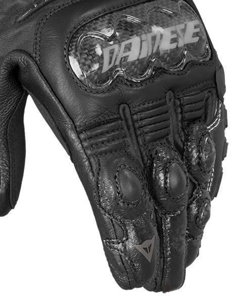 Мотоперчатки Dainese Carbon D1 Short подходят для дальних поездок и повседневного использования в городе. Основной материал изготовления - износостойкая овечья кожа усиленная козьей, между большим и указательным пальцами. Благодаря микроэластичным вставкам и мягкой замше в области ладони, при эксплуатации не чувствуется скованность движений. Внутренняя часть оснащена перфорацией, создающей постоянную вентиляцию внутри, а также силиконовым нанесением, увеличивающим сцепление с рулем.