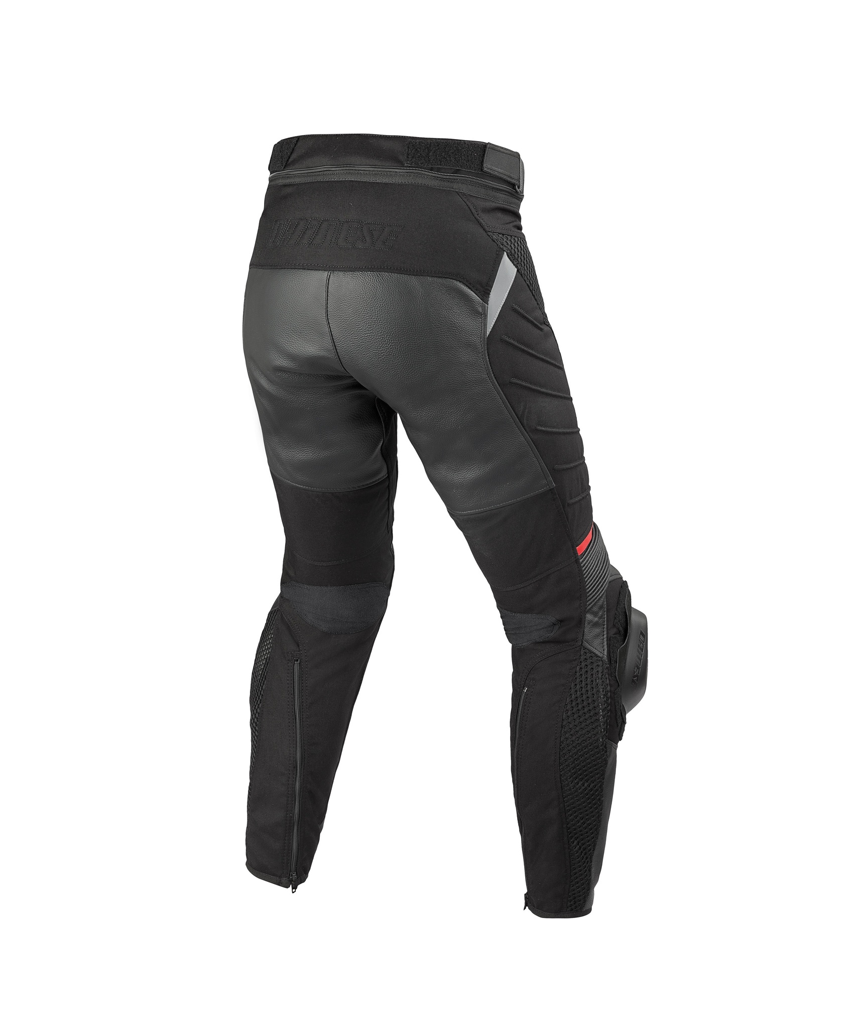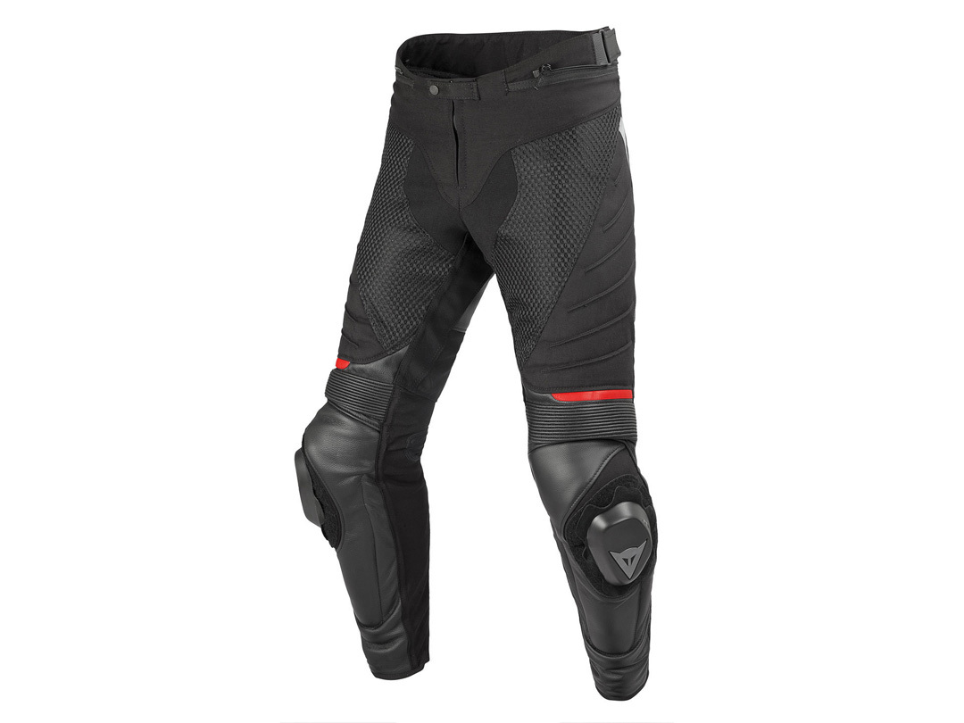 Съемные композитные накладки для защиты коленей сертифицированы по европейскому стандарту EN 1621-1 на противодействие удару. Предусмотрено крепление с мотоциклетными куртками бренда и светоотражающие элементы, наружных карманов нет.
