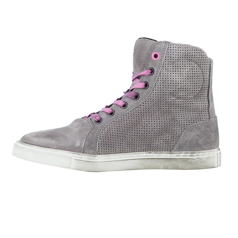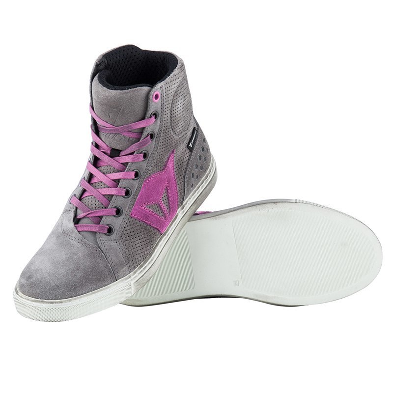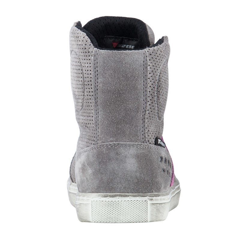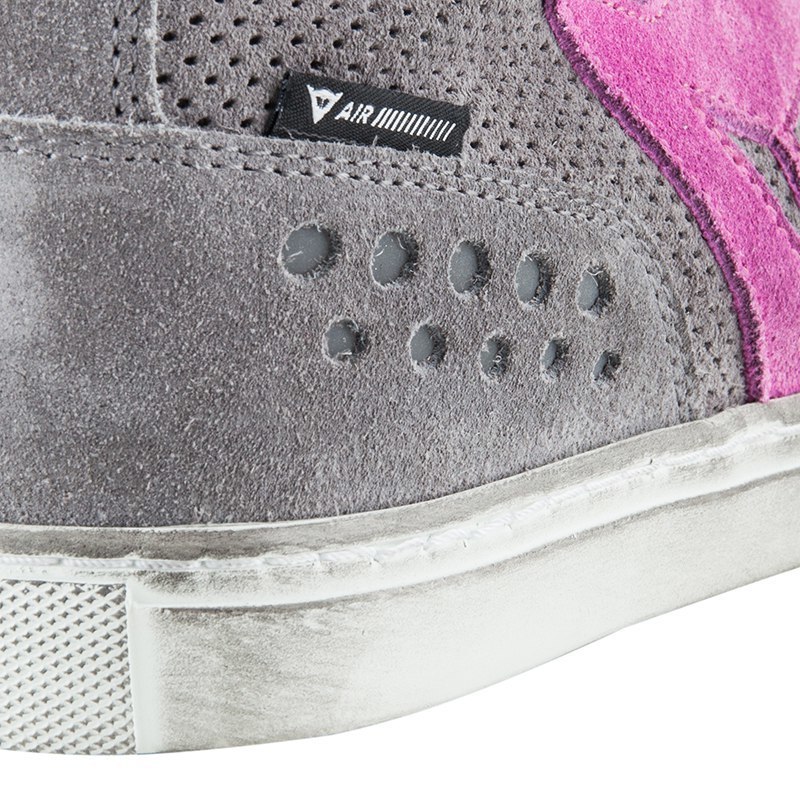 Городские мотокроссовки Dainese Street Biker Air Lady изготовлены из перфорированной коровьей кожи серого цвета, которая устойчива к истиранию. Внутри находится дышащая двойная подкладка, обеспечивающая максимальный комфорт даже в жаркую погоду, благодаря постоянной вентиляции.