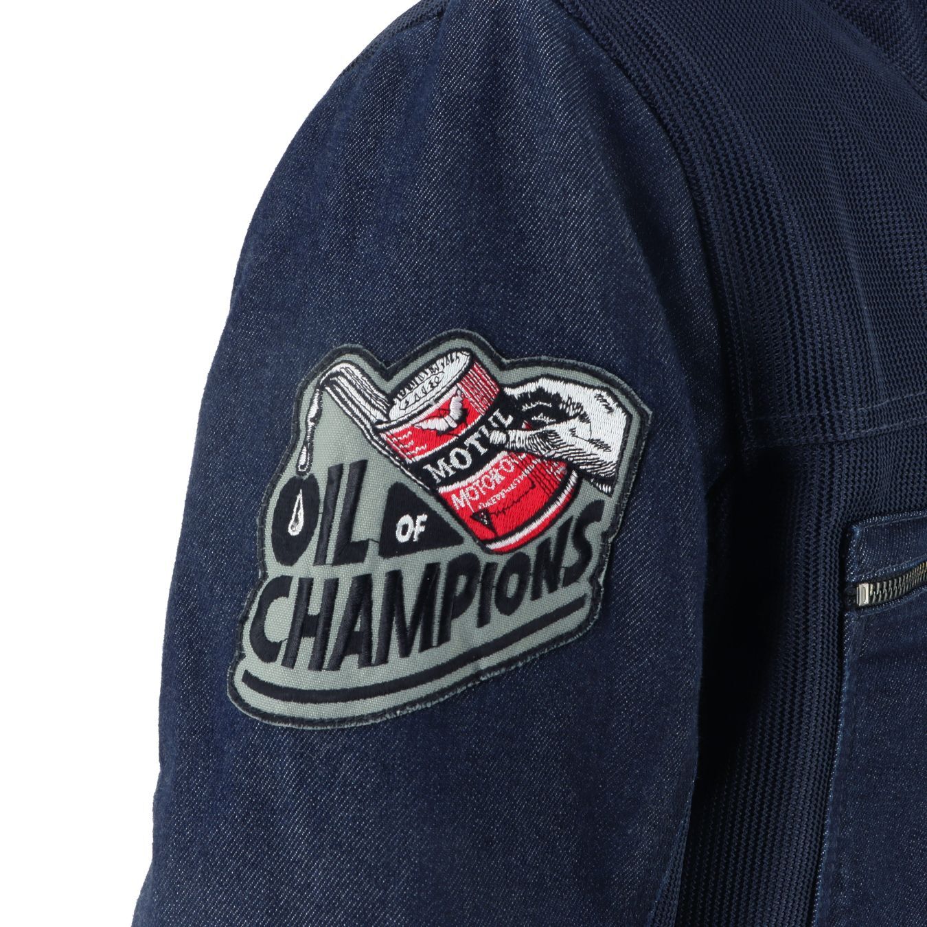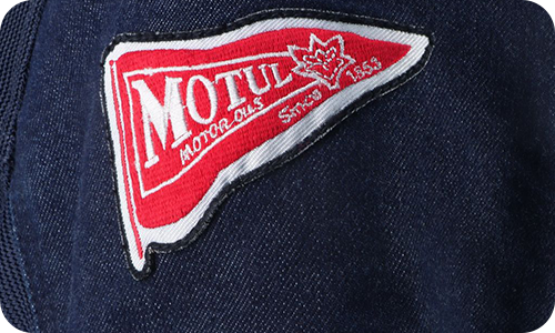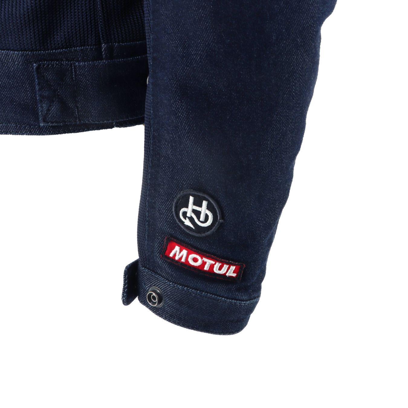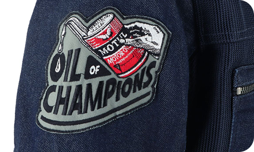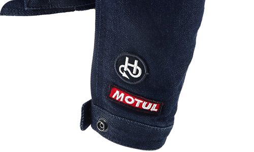 Украшенна вышитыми нашивками Helstons и Motul на плечах.
