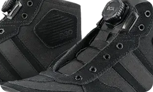 Верх выполнен из натуральной кожи, которая обеспечивает долговечность, адаптируется к ноге и сохраняет презентабельный вид. Голеностопные вставки D30® поглощают ударные нагрузки, а система шнуровки BOA® позволяет точно и быстро регулировать плотность посадки одной рукой, даже в перчатках. Стельки из высокоэластичной пены EVA снижают усталость, а усиленная накладка на рычаг переключения передач защищает от истирания. Противоскользящая подошва гарантирует уверенное сцепление с поверхностью педалей и асфальтом.