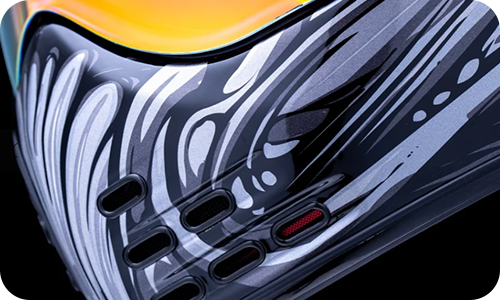 Корпус из стеклопластика ручной работы обеспечивает оптимальную прочность при минимальном весе, что делает этот мотошлем идеальным выбором для длительных поездок. Шлем соответствует стандартам безопасности ECE 22-06 (Европа), гарантируя высочайший уровень защиты. Продуманная геометрия внутреннего воздушного потока и непрерывная система вентиляции с множеством отверстий на лбу, подбородке и для выхода воздуха в сочетании с каналами EPS сохраняют голову в прохладе даже при жаркой езде.