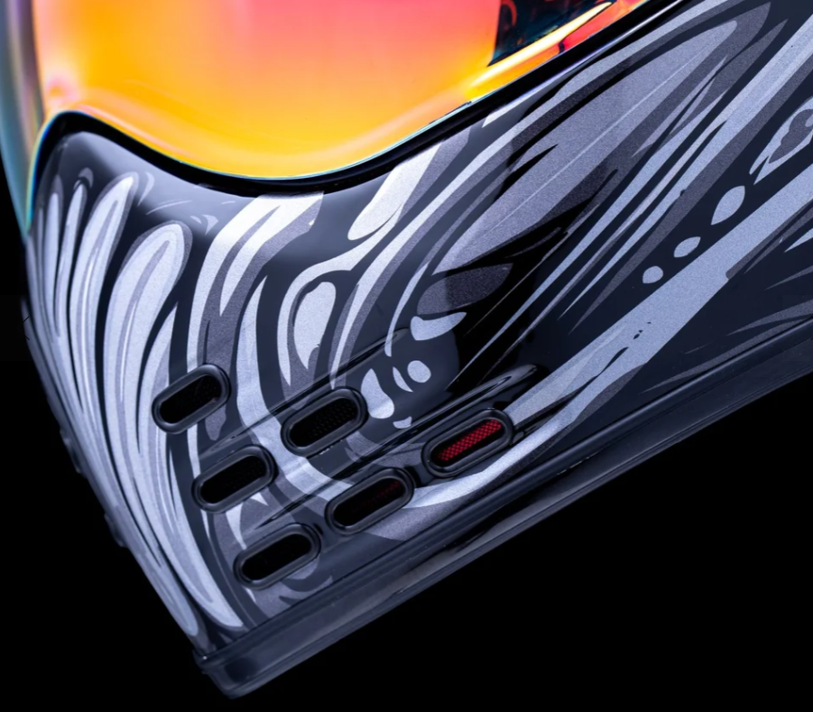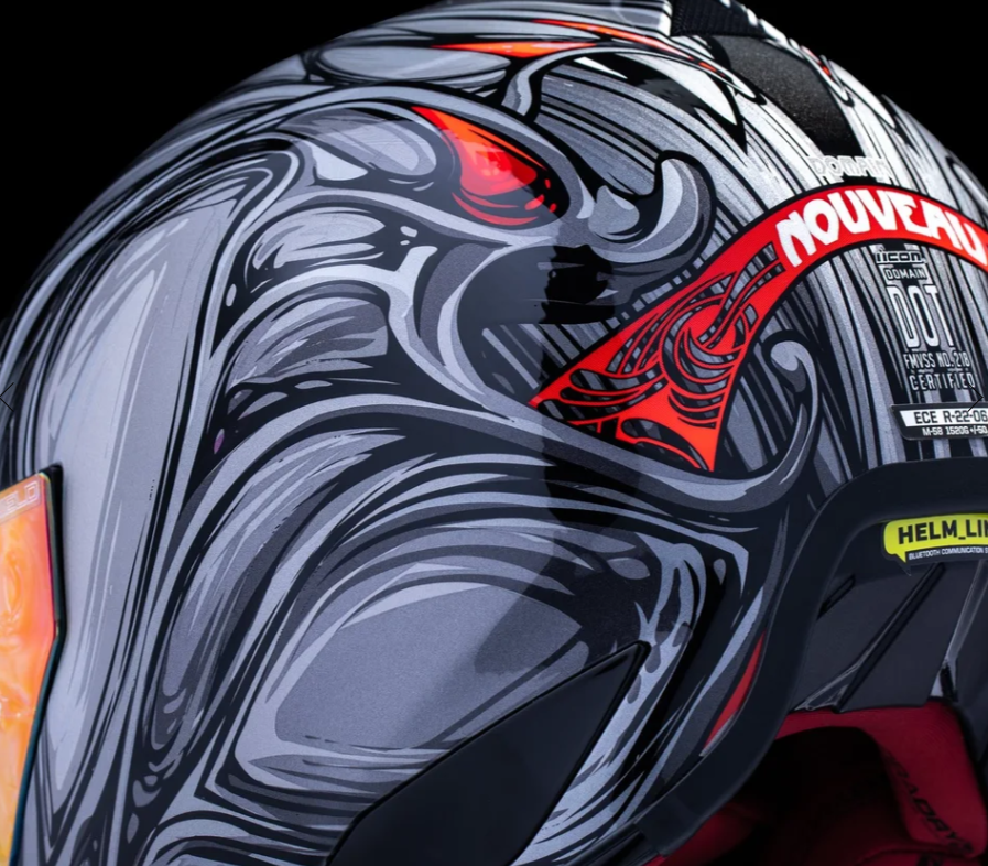 Мотошлем Icon Domain Nouveau — это настоящий крутой мотошлем интеграл в стиле барокко, сочетающий винтажные линии и превосходные характеристики. Этот шлем в серебристом цвете с элегантной графикой разработан с корпусом из стеклопластика ручной работы, который обеспечивает высокопрочную защиту при небольшом весе, воплощая в себе элегантность, безопасность и уникальный дизайн.