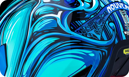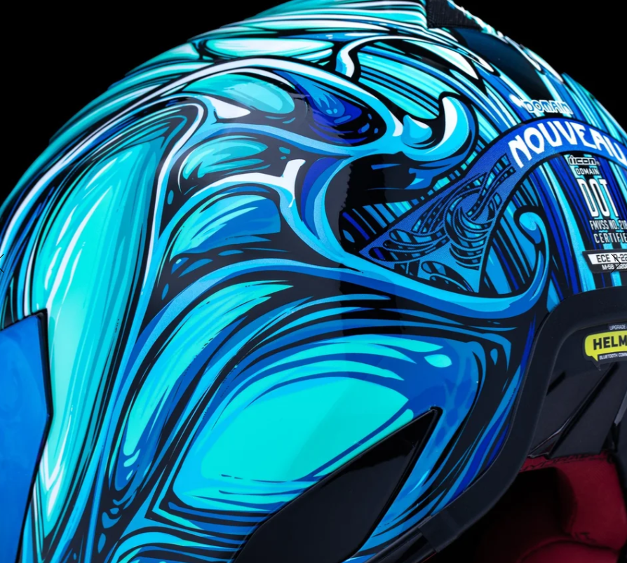 Мотошлем Icon Domain Nouveau — это воплощение элегантности, безопасности и передового дизайна, созданное для мотоциклистов, которые ценят стиль и функциональность. Этот мотошлем интеграл в синем цвете с графикой оснащен изготовленной вручную оболочкой из стеклопластика (FRP), что обеспечивает максимальную прочность при минимальном весе.