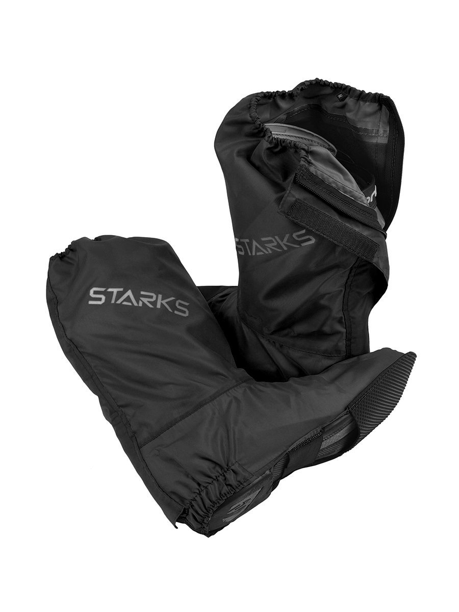 Дождевые бахилы Starks Rain Boots помогают сохранить ноги и мотоботы райдера в сухом и чистом виде даже в сильный ливень. Данная модель представляет собой чехлы, надеваемые поверх обуви и изготовленные из водонепроницаемого микрополиэфира. Для абсолютной герметичности предусмотрена «дышащая» мембрана с тефлоновым покрытием.