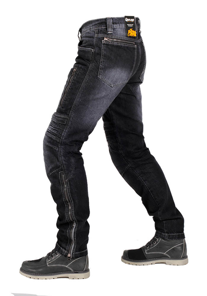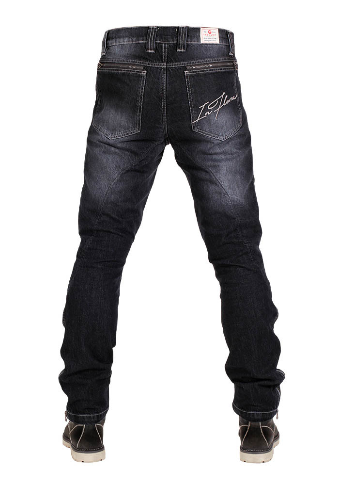 Джинсы Inflame Draco являются универсальной мотоциклетной одеждой для летнего и межсезонного использования. Брюки устойчивы к механическим нагрузкам благодаря основе из износостойкого денима RAW, произведенного на итальянской фабрике Candiani. Эргономичный крой позволяет избежать дискомфорта и усталости мышц, которые возникают при ношении тесной мотоодежды.
