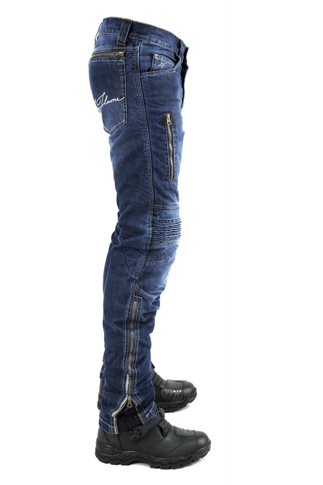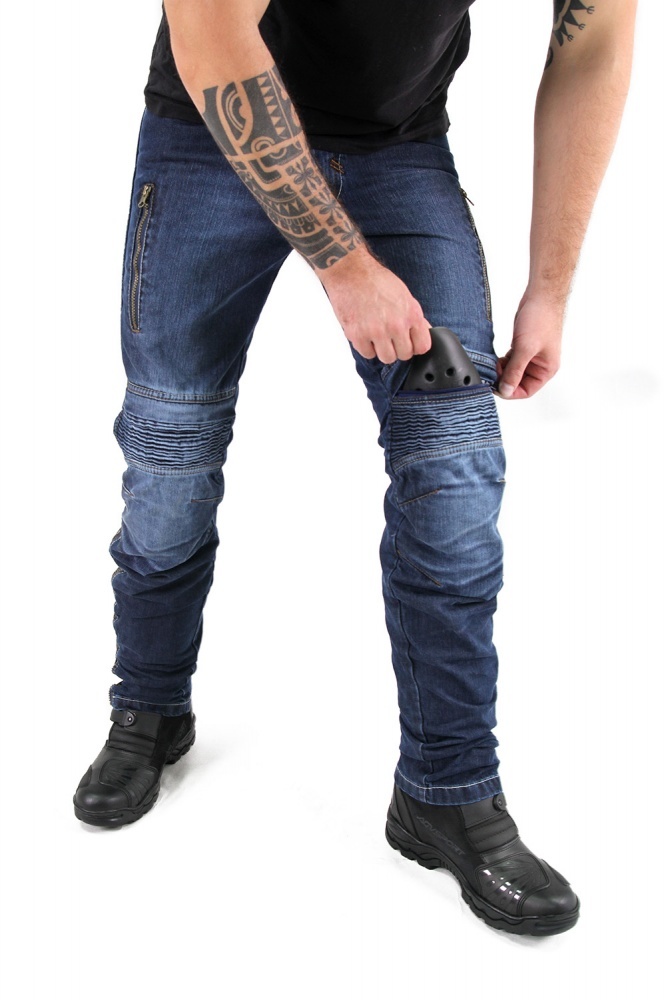 Вставные наколенники Hex сертифицированы по стандарту СЕ и служат надежной защитой при резком контакте с твердой поверхностью. Брюки имеют прилегающий силуэт и молнии внизу штанины для удобного ношения с высокими мотоботинками и другими видами обуви. Светоотражающие элементы и контрастная декоративная строчка придают джинсам Инфлейм индивидуальность и оригинальность.